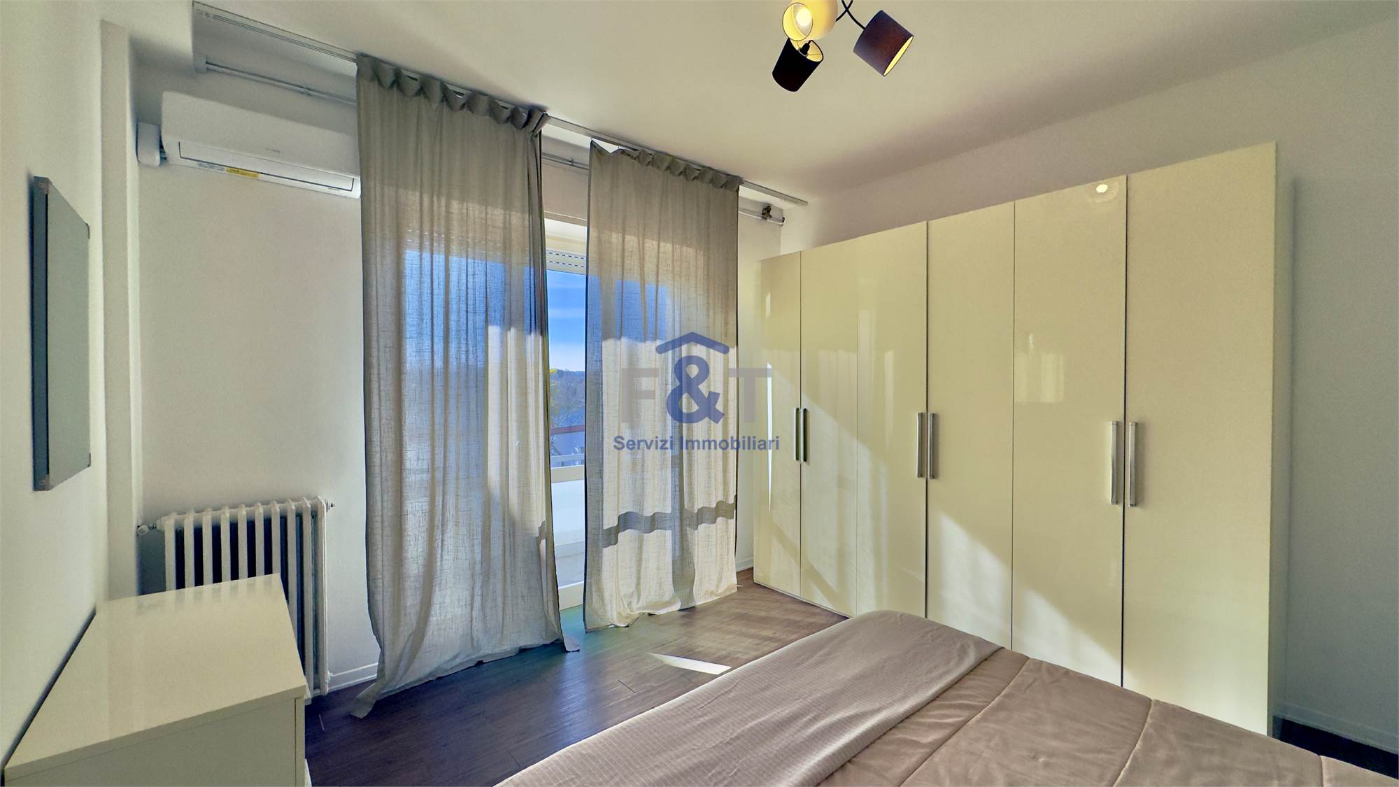The entrance leads to the functional and well-organized eat-in kitchen with an induction stovetop, ideal for everyday use. The spacious and welcoming living room is the perfect space for relaxation and socializing. The sleeping area is the property's true highlight: a spacious master bedroom with an enchanting river view, and an extremely bright single bedroom with river view and direct access to the balcony, perfect as a second bedroom, study, or guest room. Both bedrooms enjoy excellent exposure and are particularly sunny for much of the day, offering warm, bright, and pleasant spaces. A parking space completes the property, a crucial convenience in a central and sought-after location. An ideal solution for those seeking a quiet yet central location, with the added bonus of an open river view and bright rooms, perfect both as a primary residence and as an investment property.