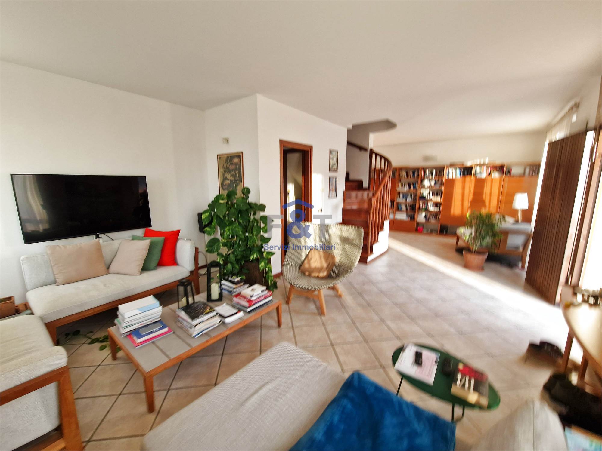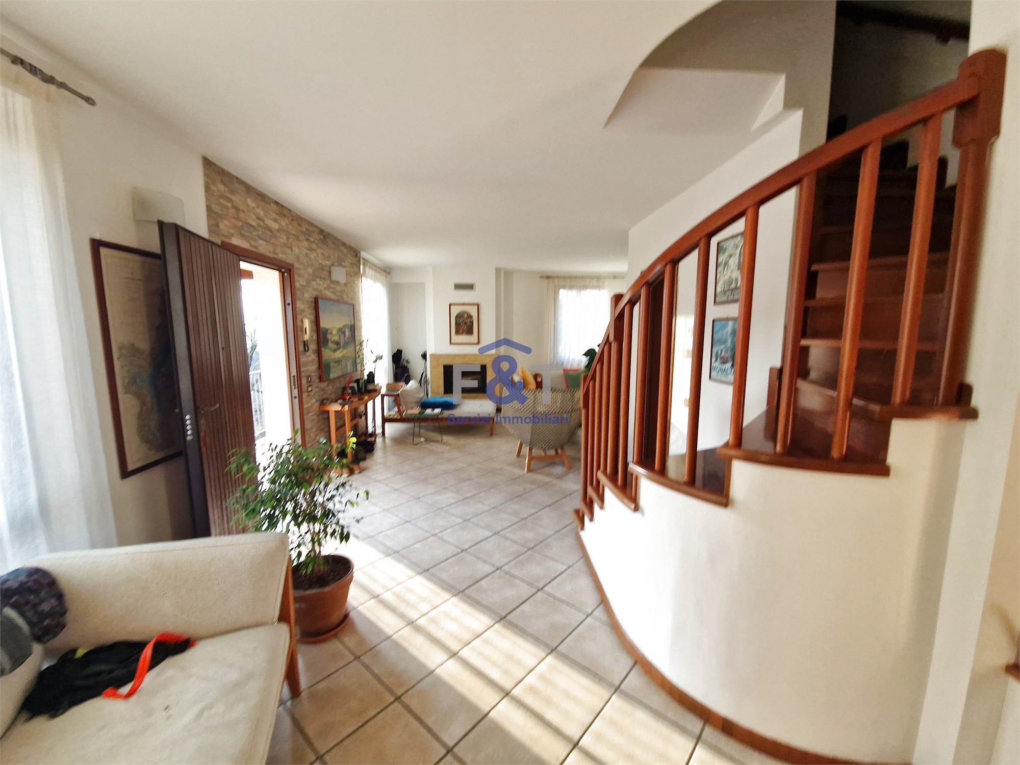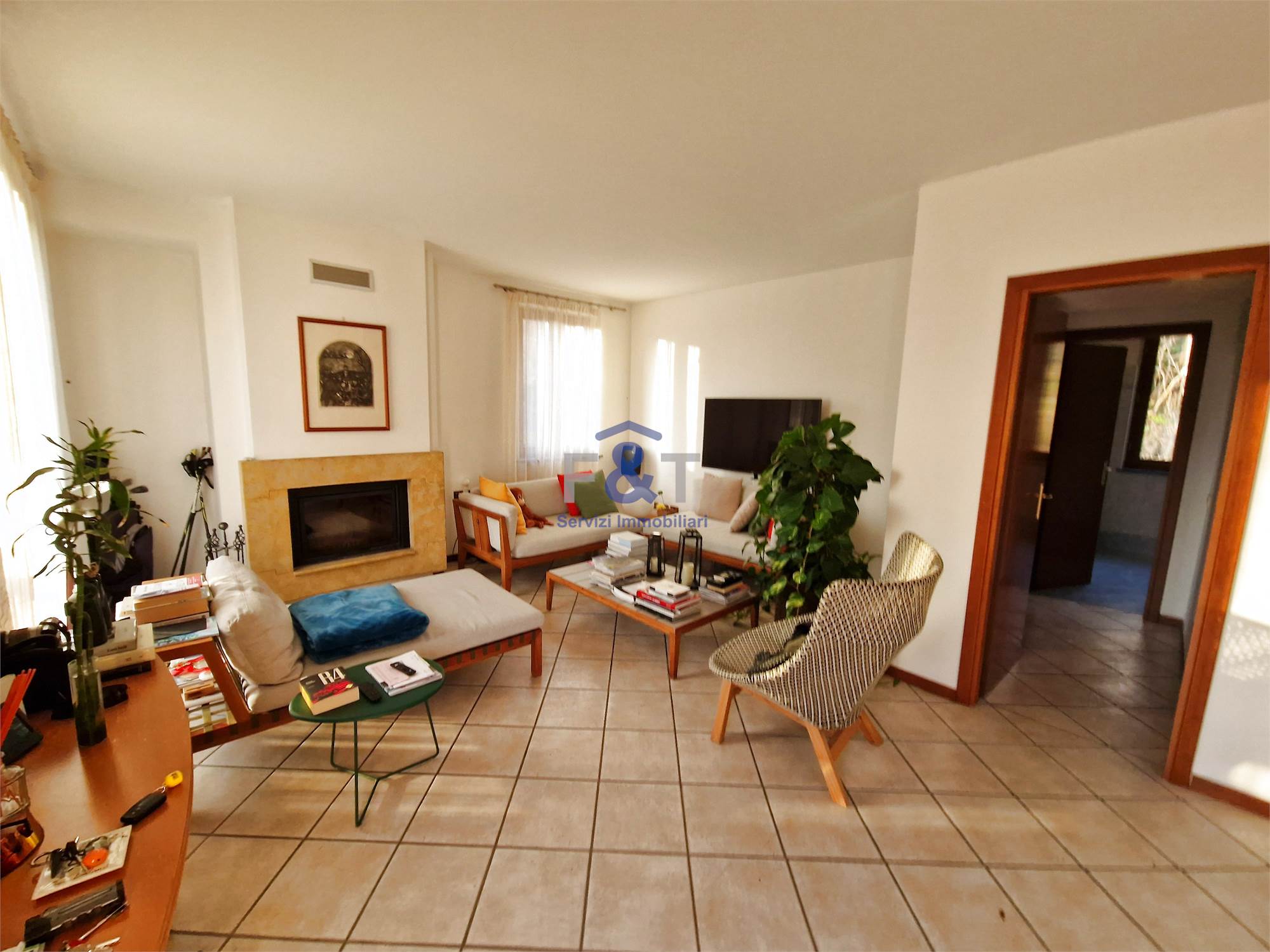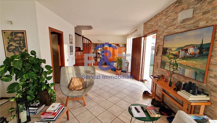 La proprietà si sviluppa su tre livelli e al primo piano accoglie una zona giorno ampia e luminosa, dominata da un grande salone con camino e uscita sul balcone, perfetto per momenti di relax, una cucina abitabile arredata su misura con accesso diretto a un portico di circa 35 mq, ideale per pranzi e cene all’aperto, una camera da letto attualmente adibita a studio e un bagno moderno con sanitari sospesi e doccia.
