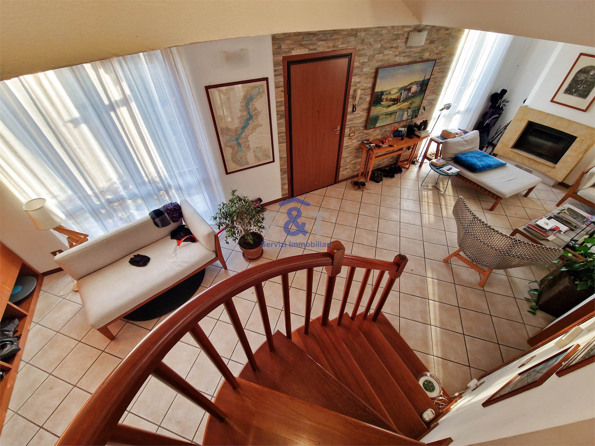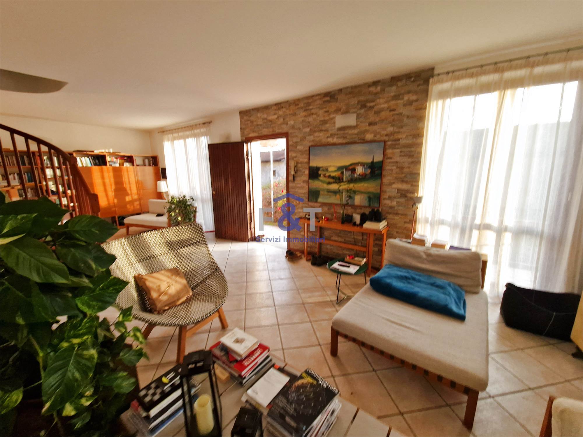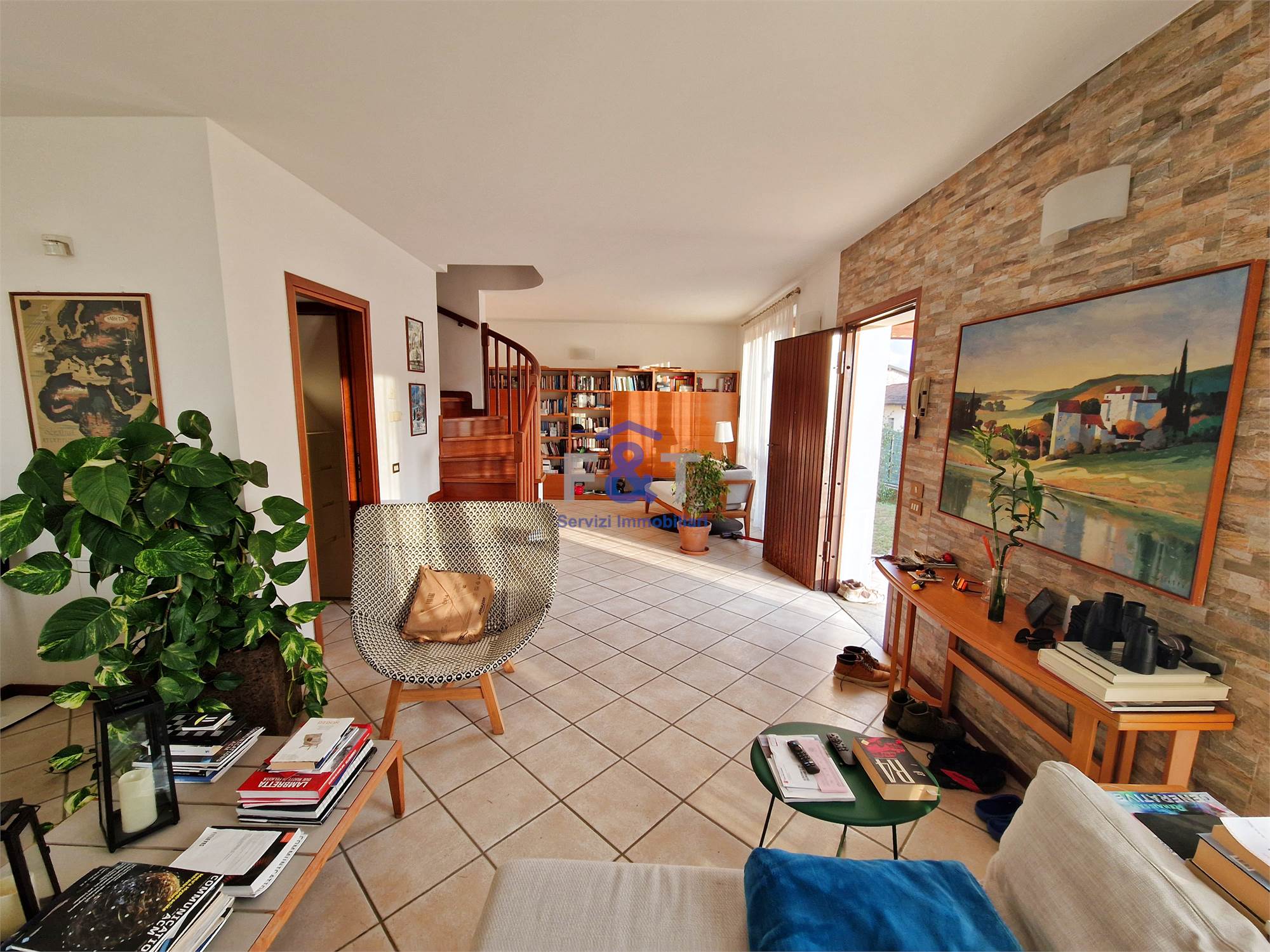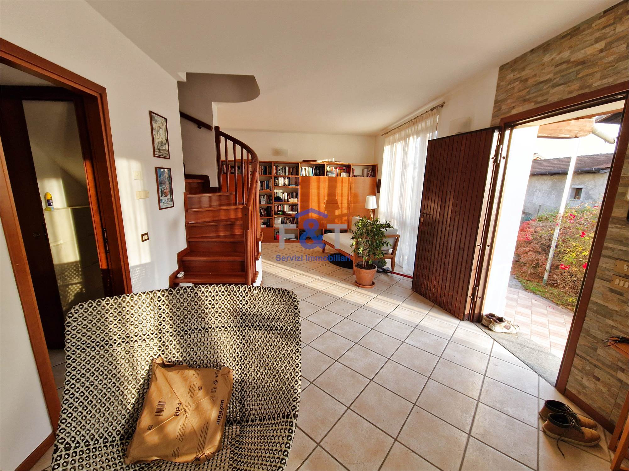 La proprietà si sviluppa su tre livelli e al primo piano accoglie una zona giorno ampia e luminosa, dominata da un grande salone con camino e uscita sul balcone, perfetto per momenti di relax, una cucina abitabile arredata su misura con accesso diretto a un portico di circa 35 mq, ideale per pranzi e cene all’aperto, una camera da letto attualmente adibita a studio e un bagno moderno con sanitari sospesi e doccia.