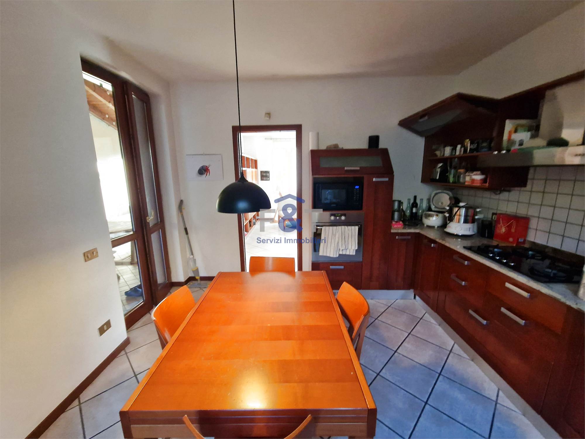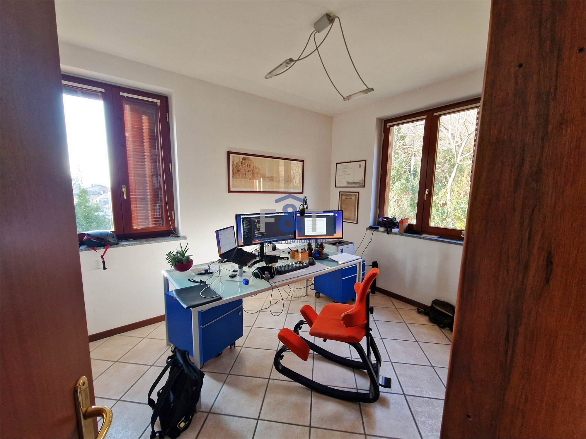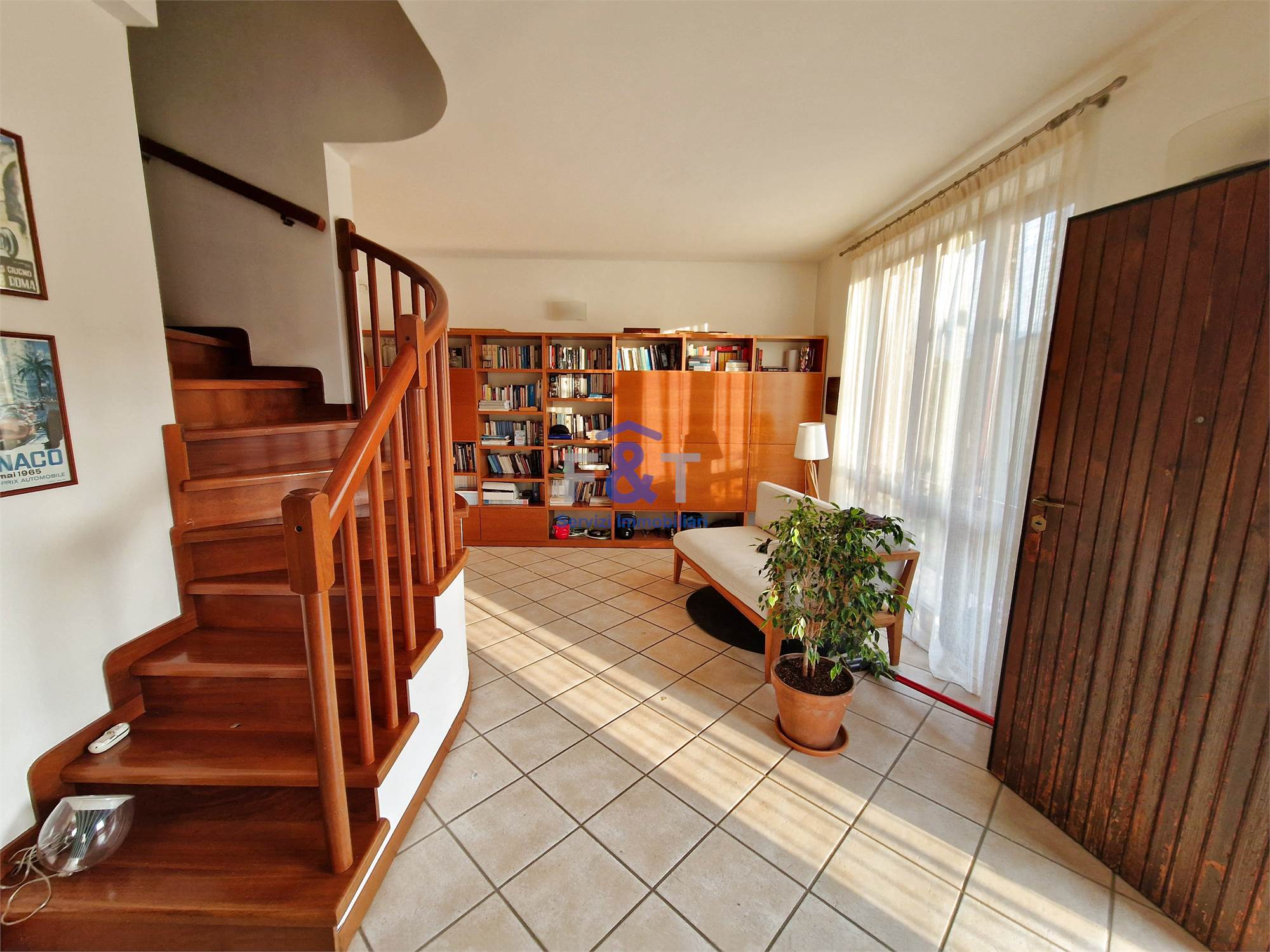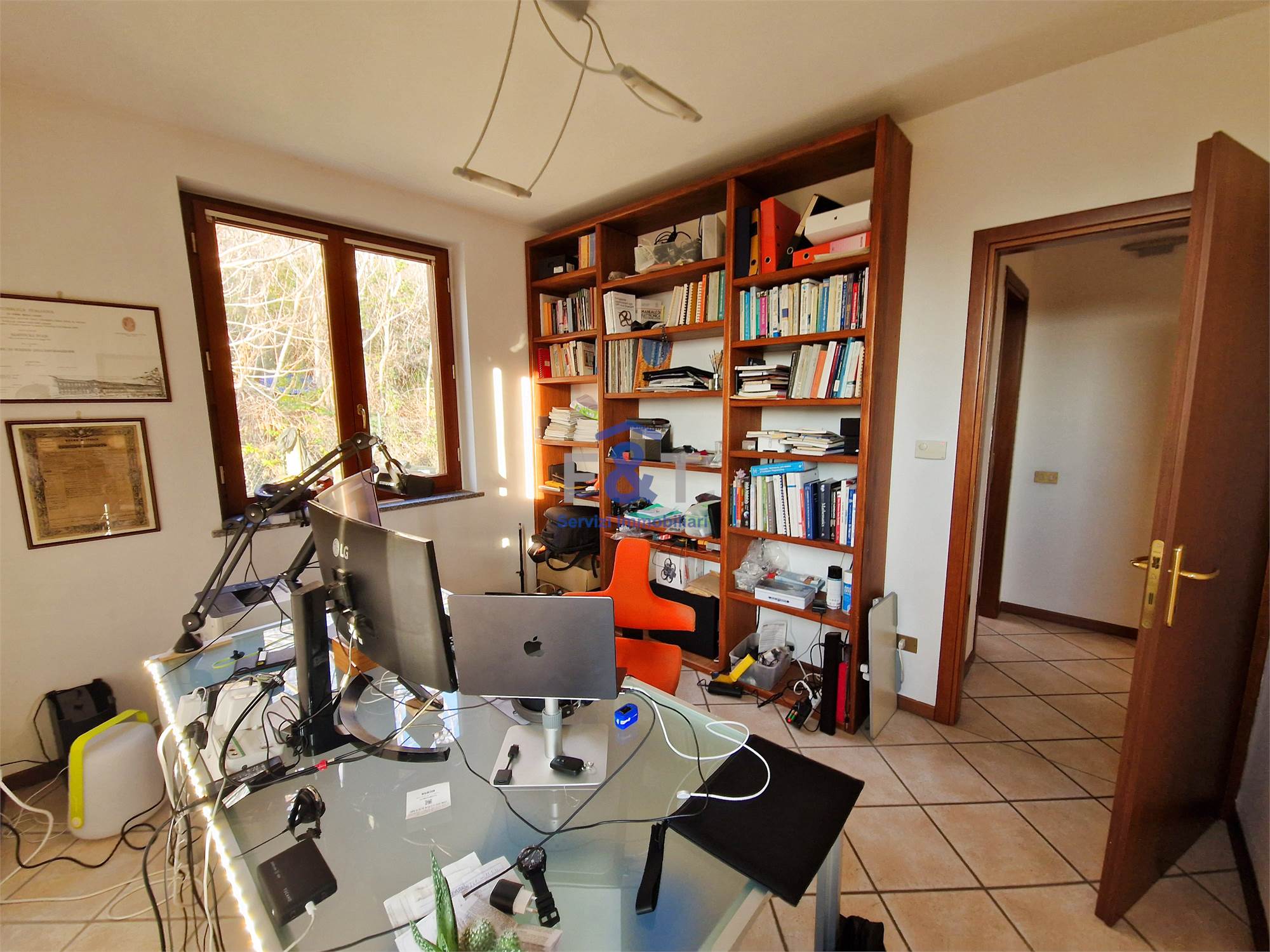 La proprietà si sviluppa su tre livelli e al primo piano accoglie una zona giorno ampia e luminosa, dominata da un grande salone con camino e uscita sul balcone, perfetto per momenti di relax, una cucina abitabile arredata su misura con accesso diretto a un portico di circa 35 mq, ideale per pranzi e cene all’aperto, una camera da letto attualmente adibita a studio e un bagno moderno con sanitari sospesi e doccia.
