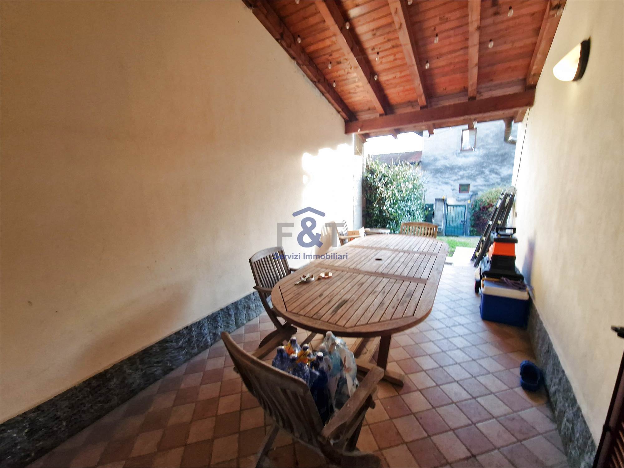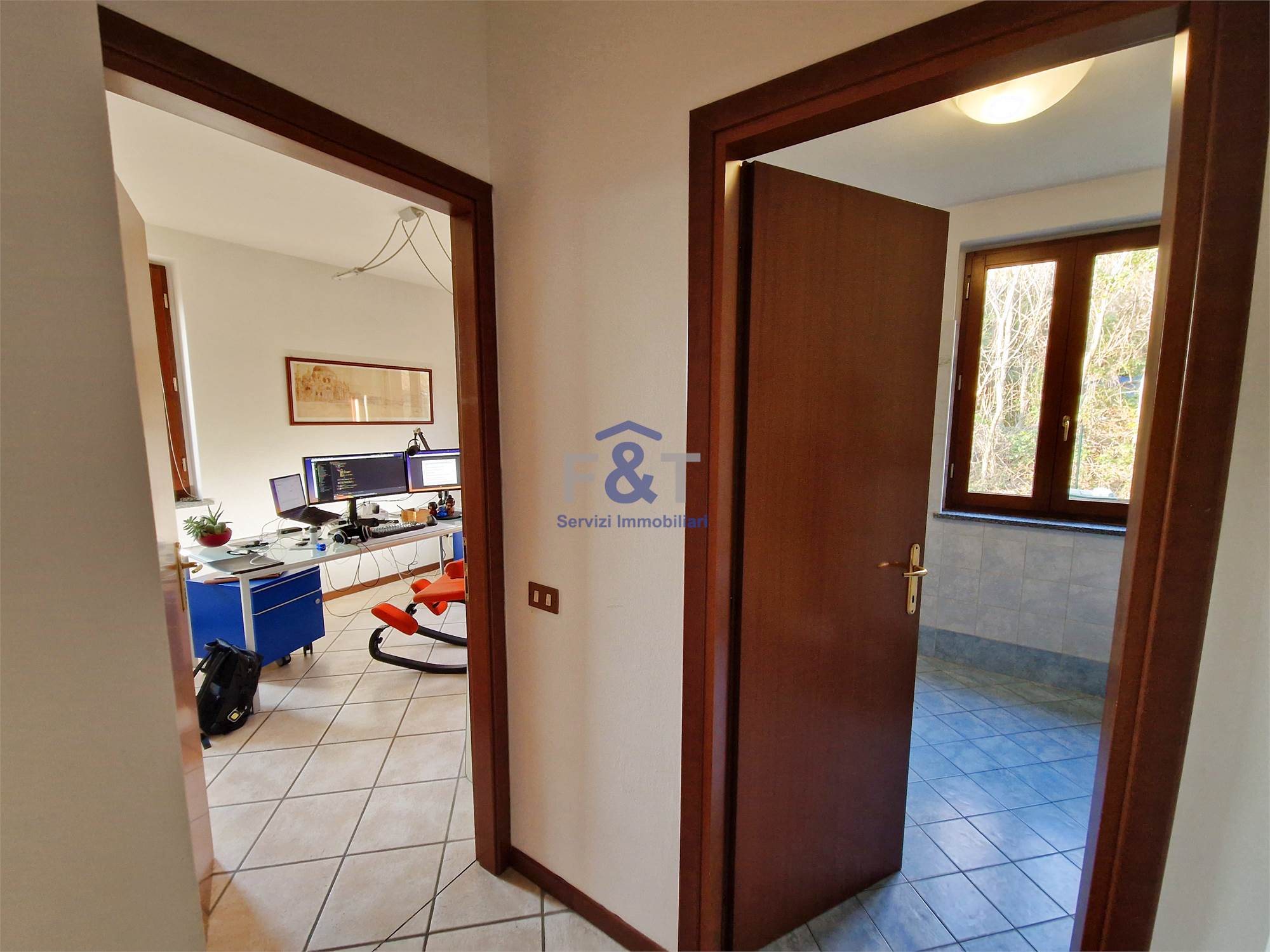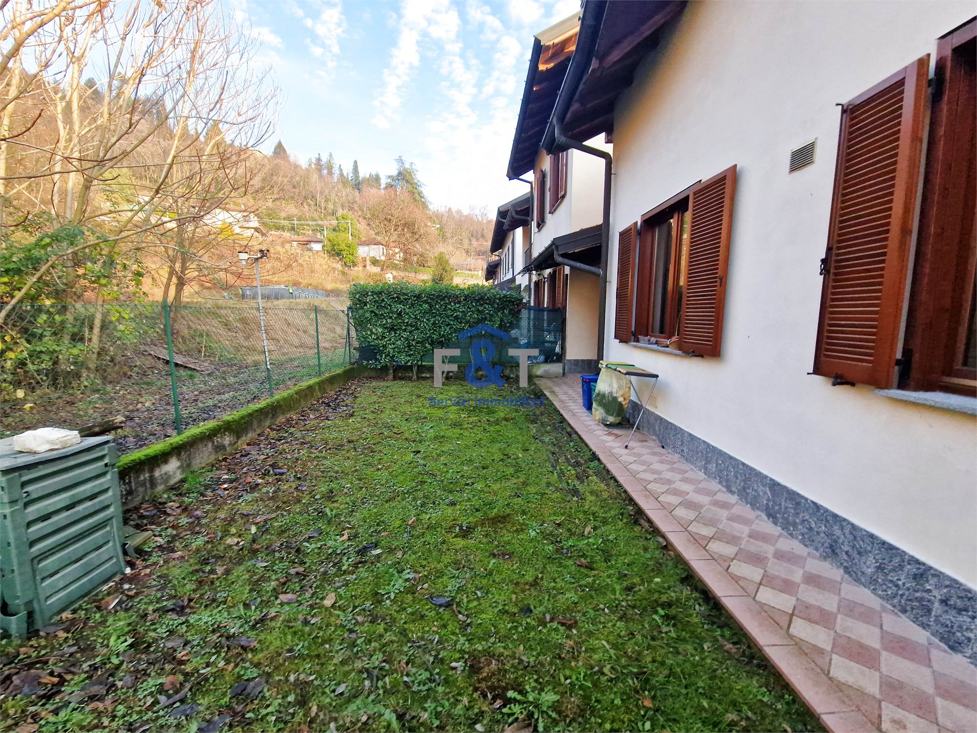 Completa la proprietà il giardino di circa 800 mq, in parte in pendenza fino alla recinzione, che regala scorci verdi e privacy.