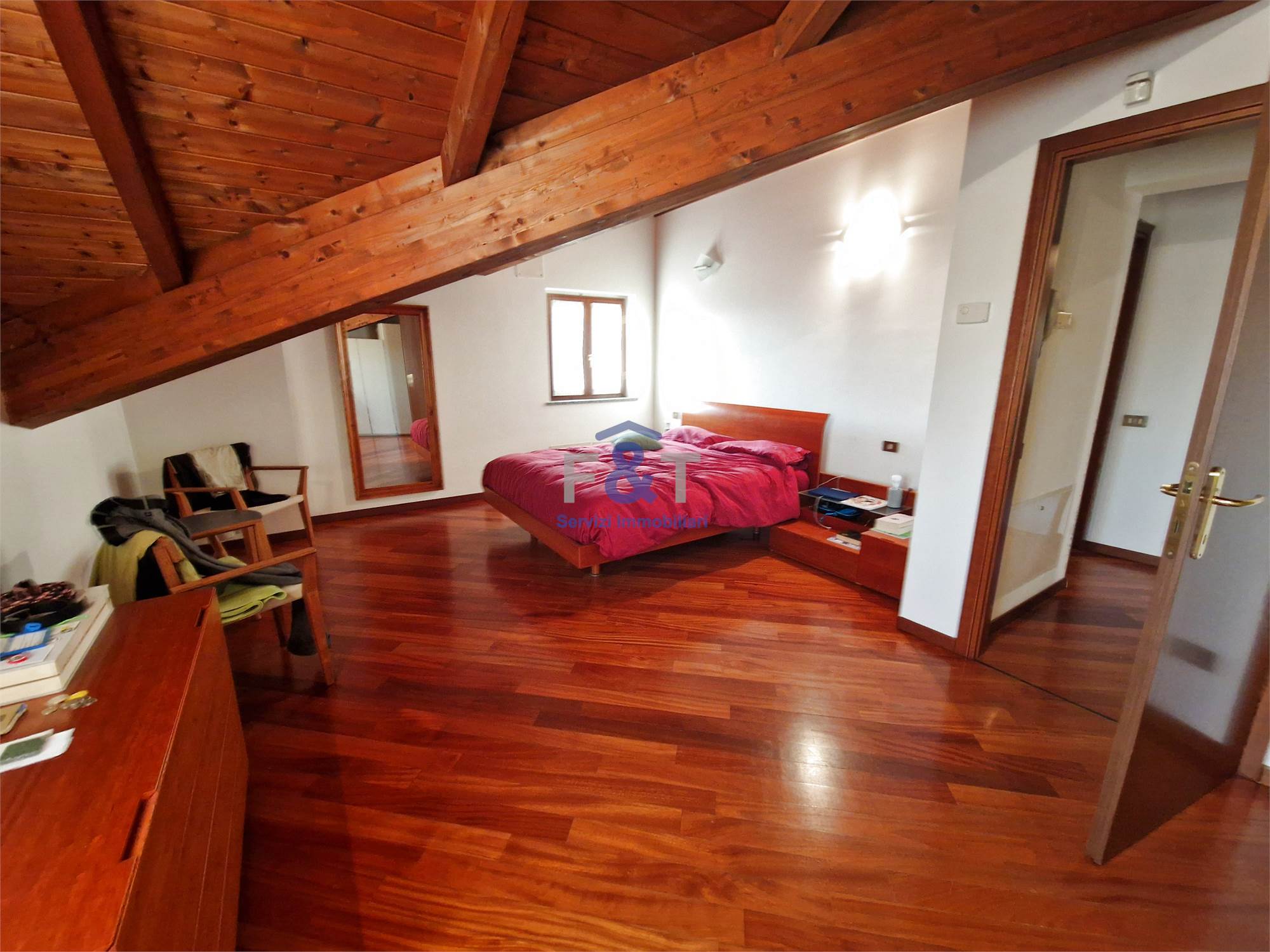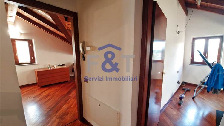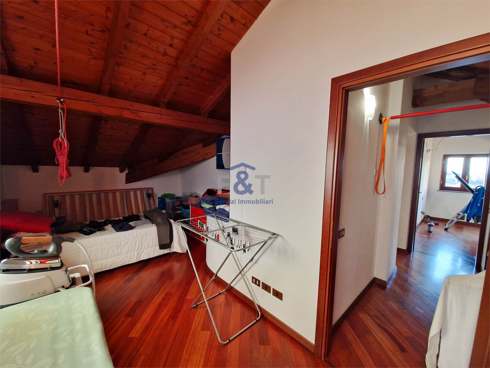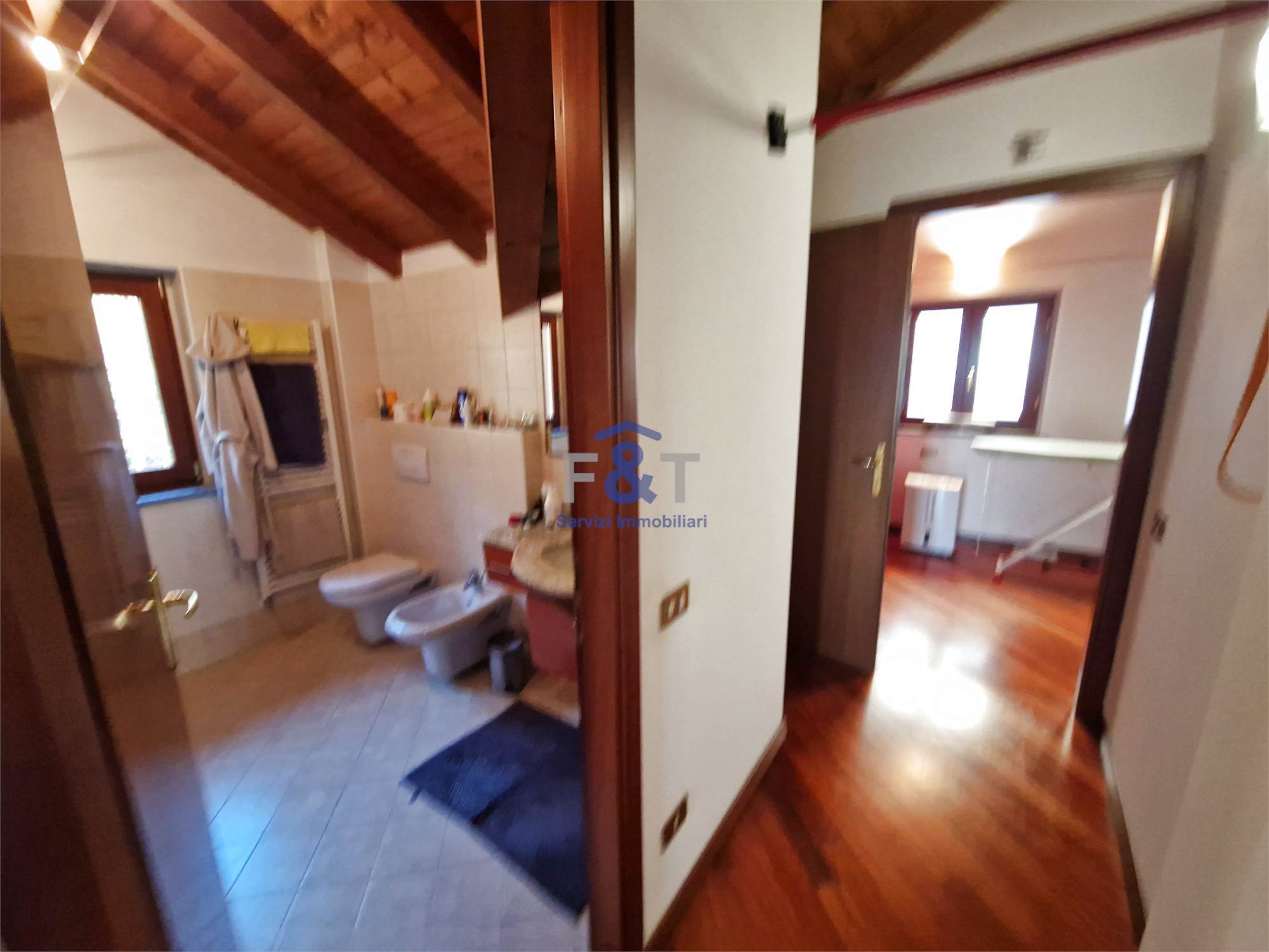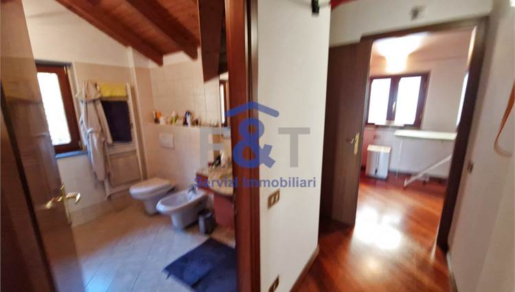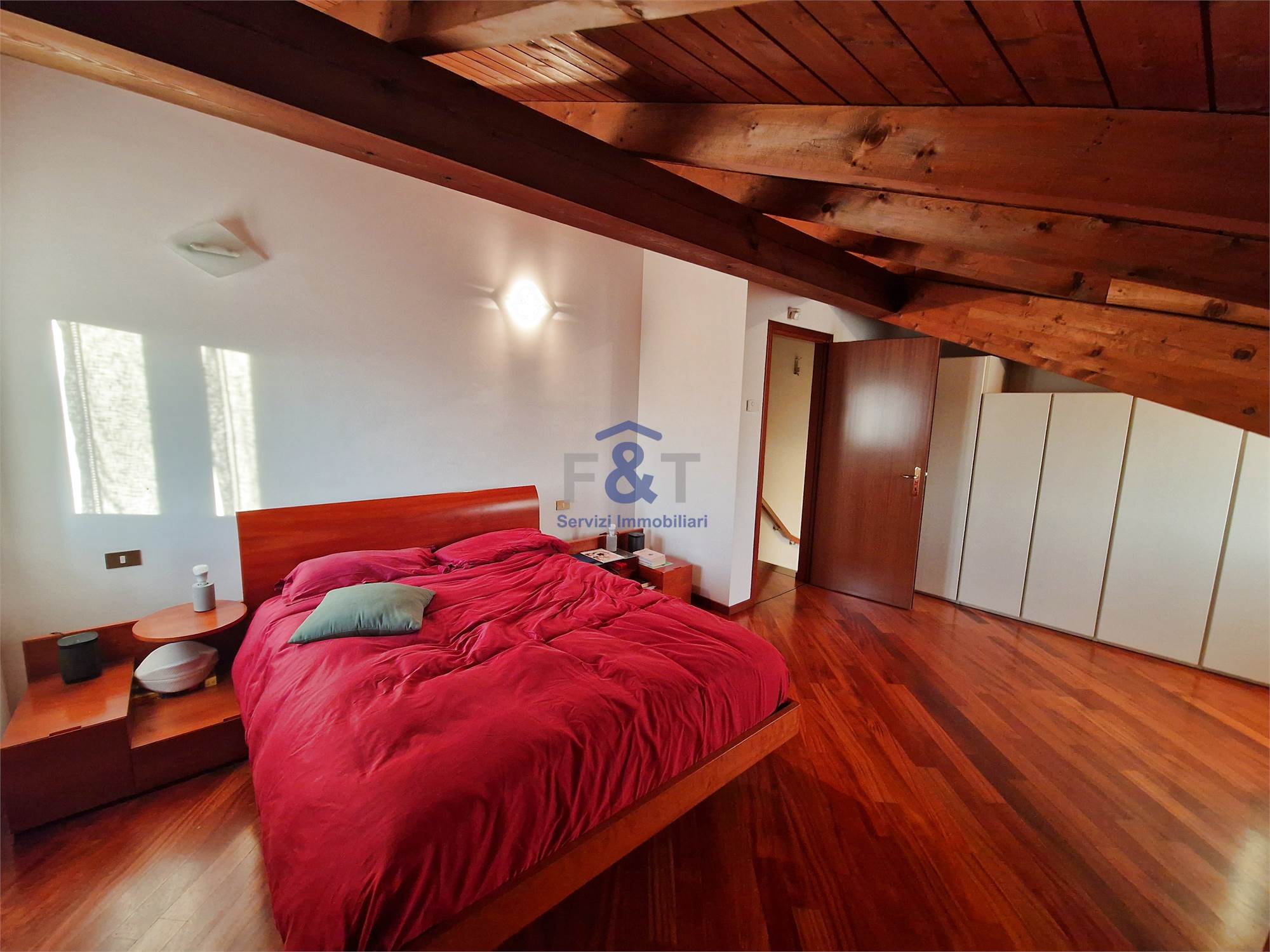Salendo al secondo piano si accede alla zona notte, impreziosita da pavimenti in legno e travi a vista, dove trovano spazio tre camere da letto di generose dimensioni, un bagno completo con sanitari sospesi e vasca idromassaggio e un comodo ripostiglio utilizzabile anche come cabina armadio.