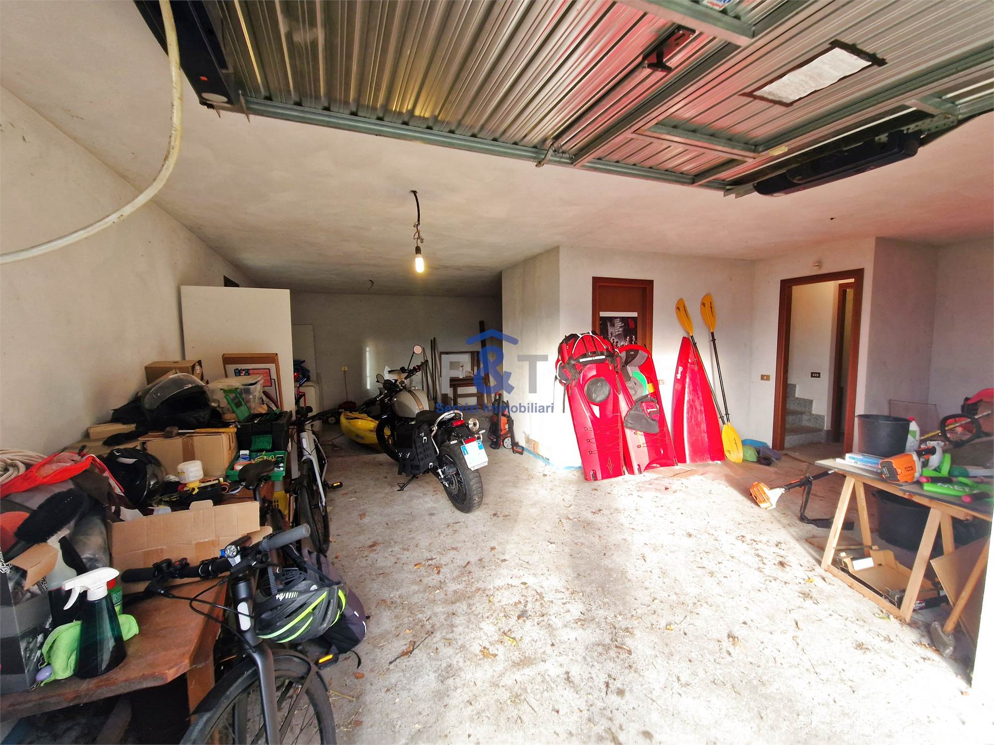 Il piano terra, di circa 130 mq e attualmente allo stato grezzo, offre enormi potenzialità: qui troviamo un ampio garage con locale sottoscala e locale tecnico, oltre a una grande area da trasformare in una suggestiva taverna con predisposizione per camino e terzo bagno.
