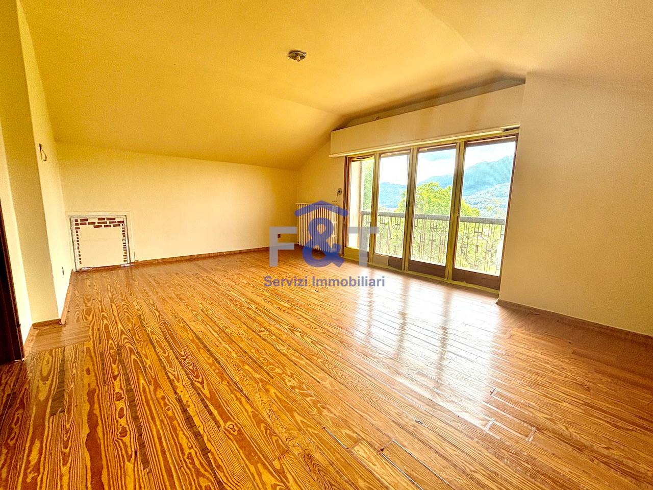 Situata in zona panoramica, circondata dal verde e con una magnifica vista sui monti circostanti, con circa 750 mq di giardino, perfetto per trascorrere momenti di relax. L'ingresso principale conduce ad un ampio piano giorno, dove si trova una cucina abitabile e un salone luminoso dotato di balcone e terrazzo. La villa dispone di due bagni, una camera singola e una camera matrimoniale al piano terra, mentre al primo piano si trova un'altra camera matrimoniale con studio e bagno. La scala a vista in legno aggiunge un tocco di eleganza all'ambiente. Al piano terreno, la grande taverna offre spazio per convivialità, insieme a due locali adibiti a deposito e un ulteriore bagno. La proprietà necessita di un ammodernamento interno ed esterno, permettendo così di personalizzarla secondo i propri gusti, Questa villa è un'opportunità imperdibile per chi cerca tranquillità e spazio.