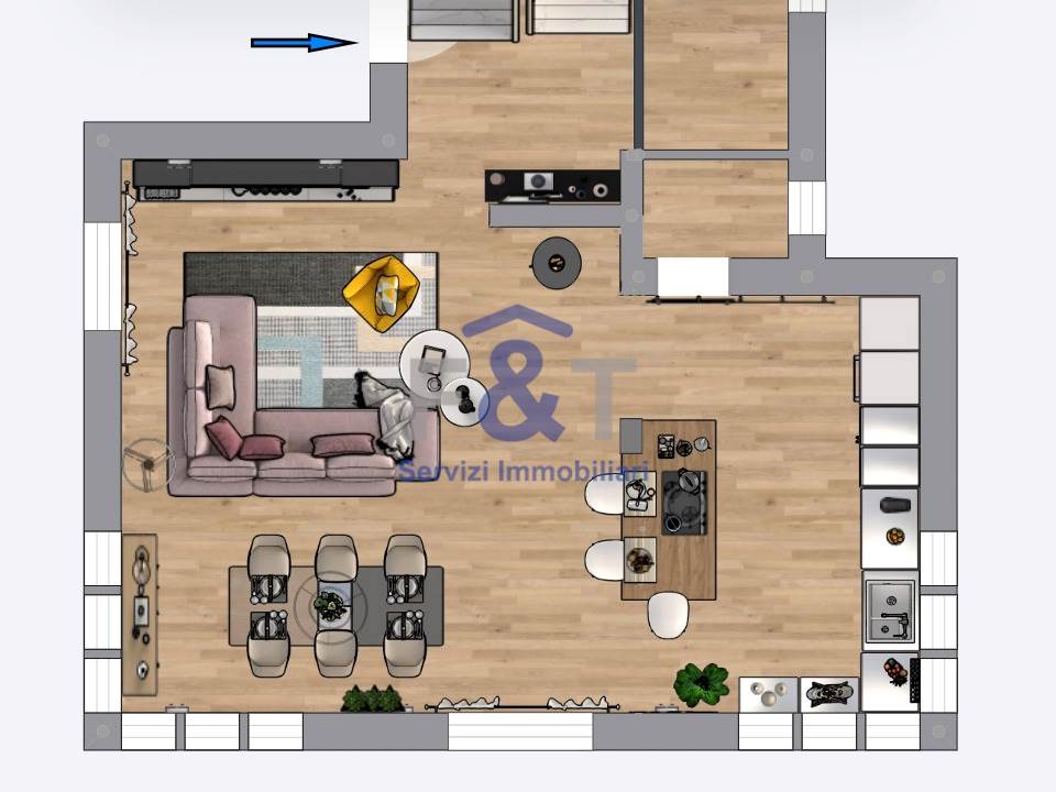 • Piano terra: ingresso scenografico, ampio soggiorno panoramico con accesso alla terrazza vista lago, cucina open space di design con locale dispensa e bagno di servizio con doccia.