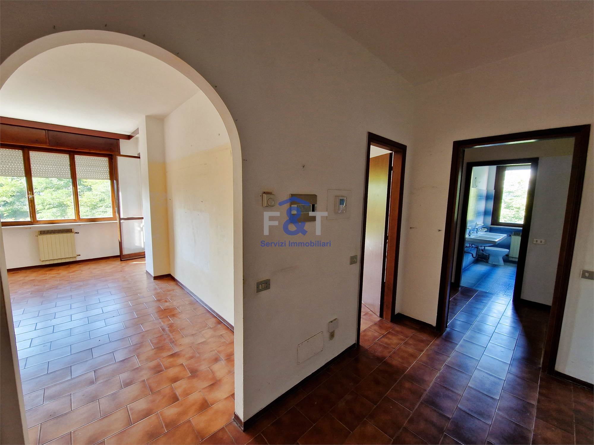 Immerso in un contesto tranquillo e circondato dal verde, questo appartamento si distingue per la sua luminosità e la perfetta distribuzione degli spazi: un ampio soggiorno con uscita su un terrazzo soleggiato esposto a sud, ideale per godersi i raggi del sole tutto l’anno, e una cucina abitabile con accesso sullo stesso terrazzo, perfetta per pranzi e cene all’aperto.