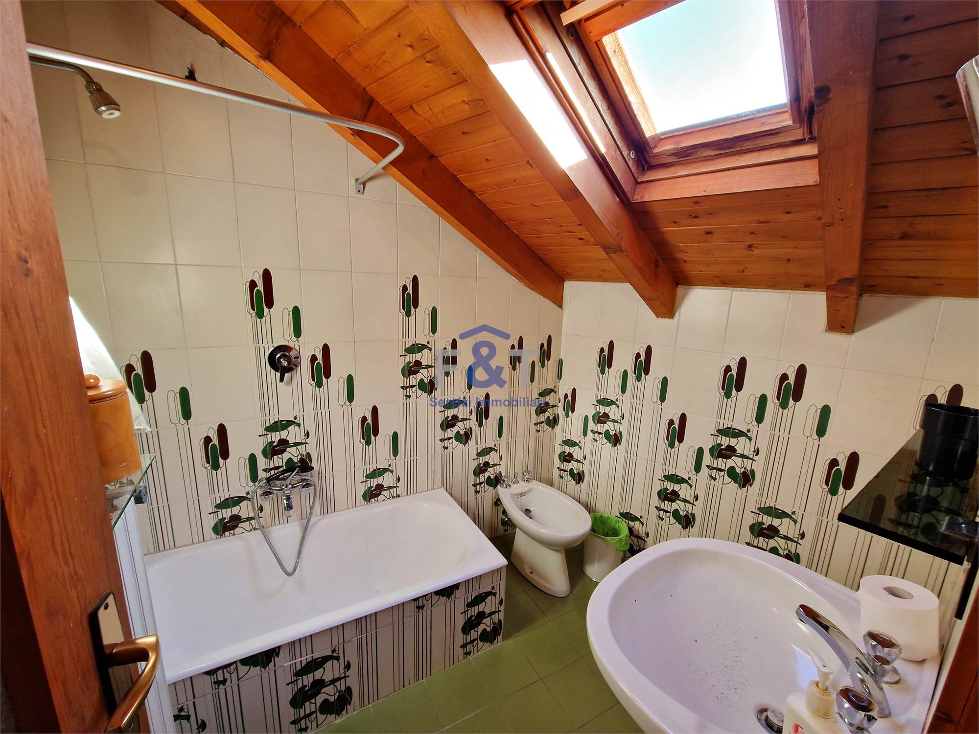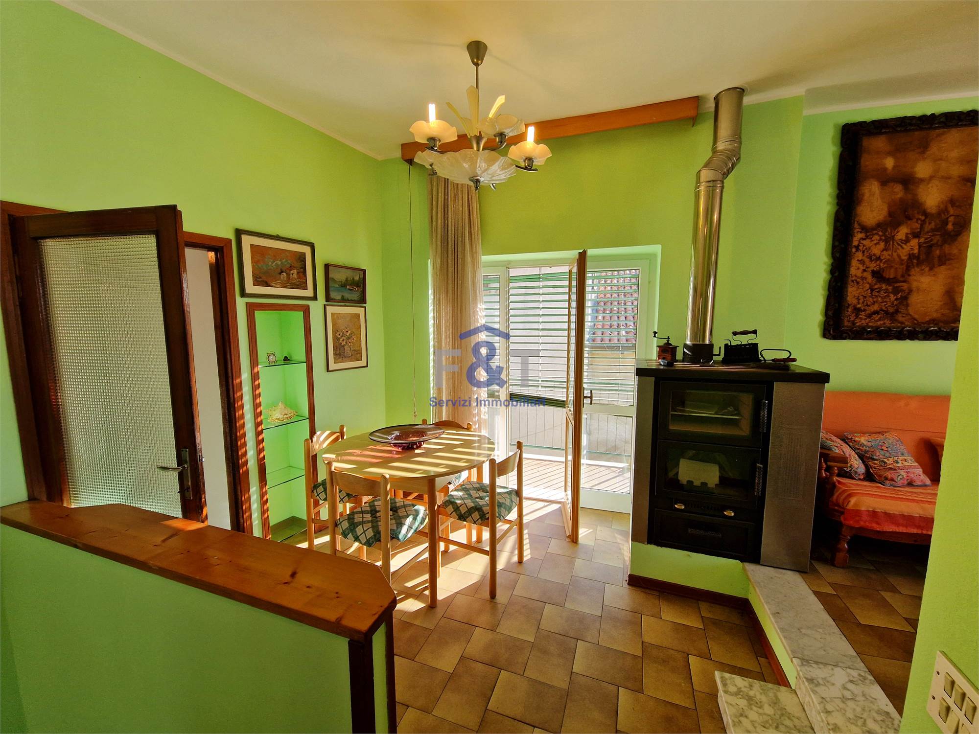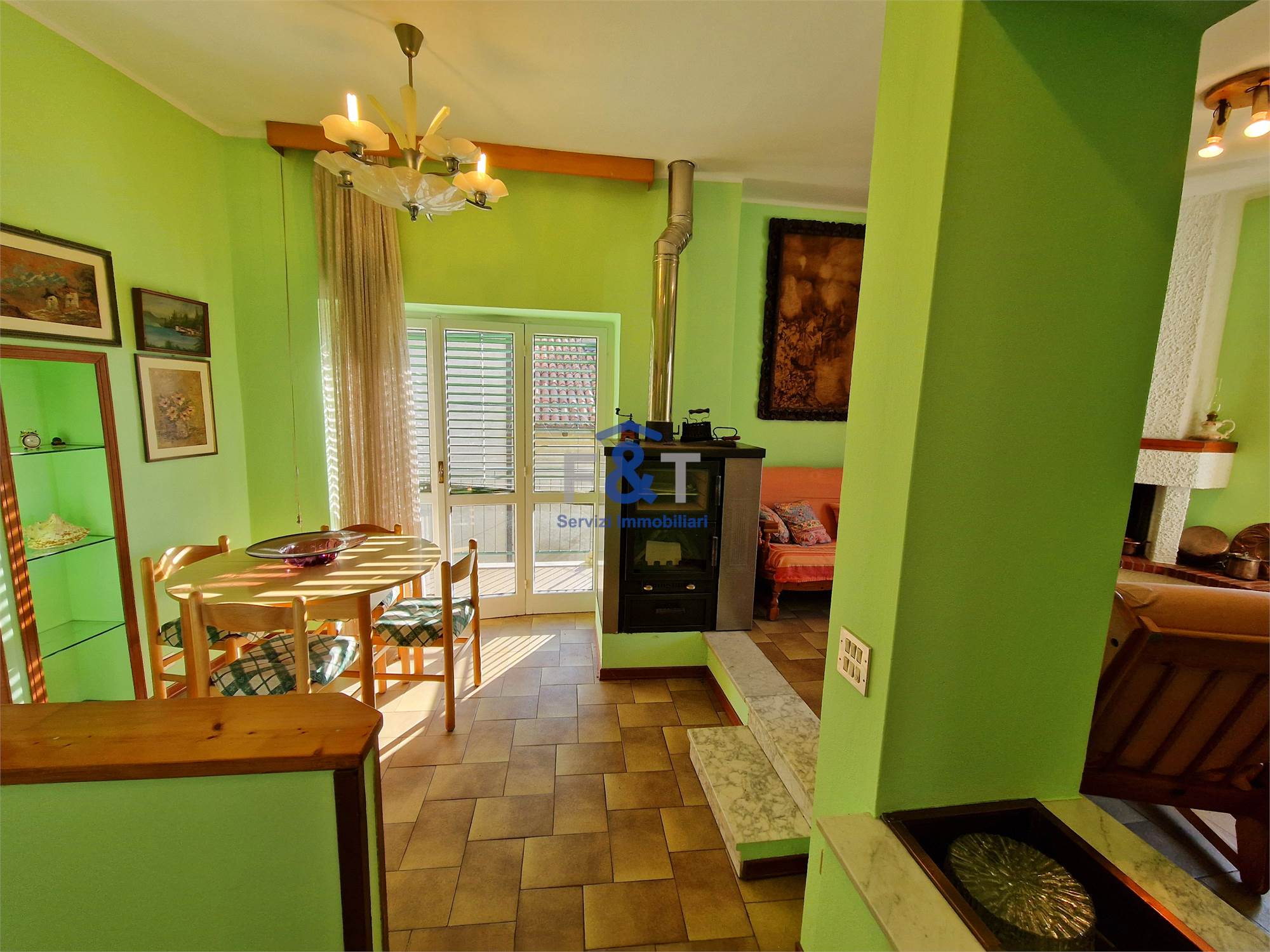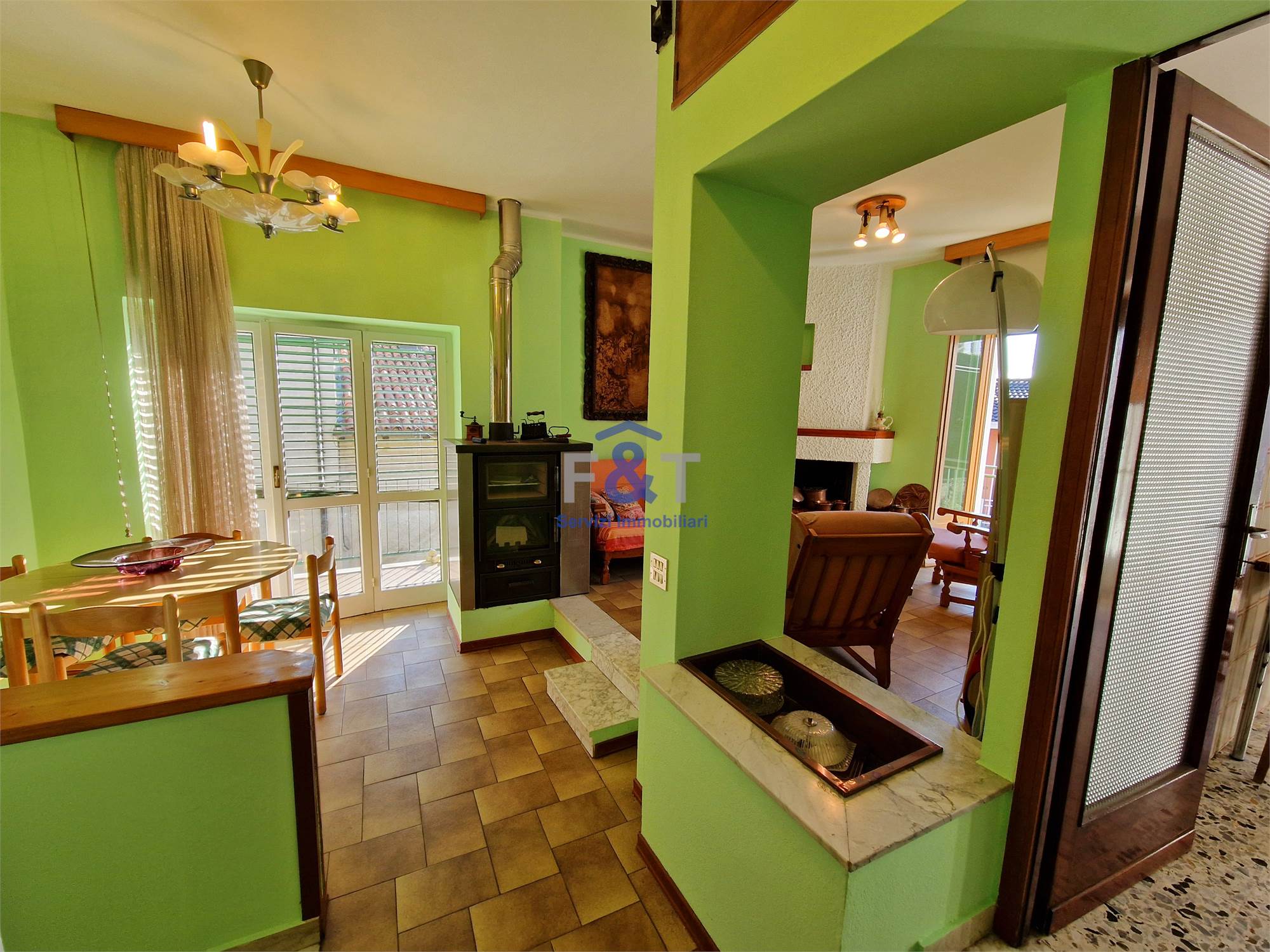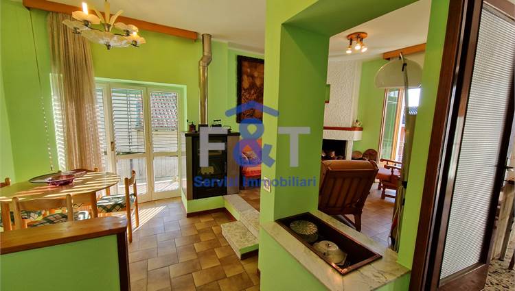 Al primo piano, il cuore della casa: un luminosissimo soggiorno con camino e stufa a legna collegata ai caloriferi, una soluzione intelligente per risparmiare sul riscaldamento e godere di un’atmosfera intima nelle giornate invernali, impreziosito da una poltrona riscaldante che regala ulteriore comfort. Il soggiorno si affaccia su un ampio balcone, così come la spaziosa zona pranzo e la cucina abitabile, anch’essa con accesso diretto al balcone, perfetta per chi ama cucinare e vivere convivialità. Completano il piano un bagno completo con vasca e una confortevole camera da letto con accesso al terzo balcone.