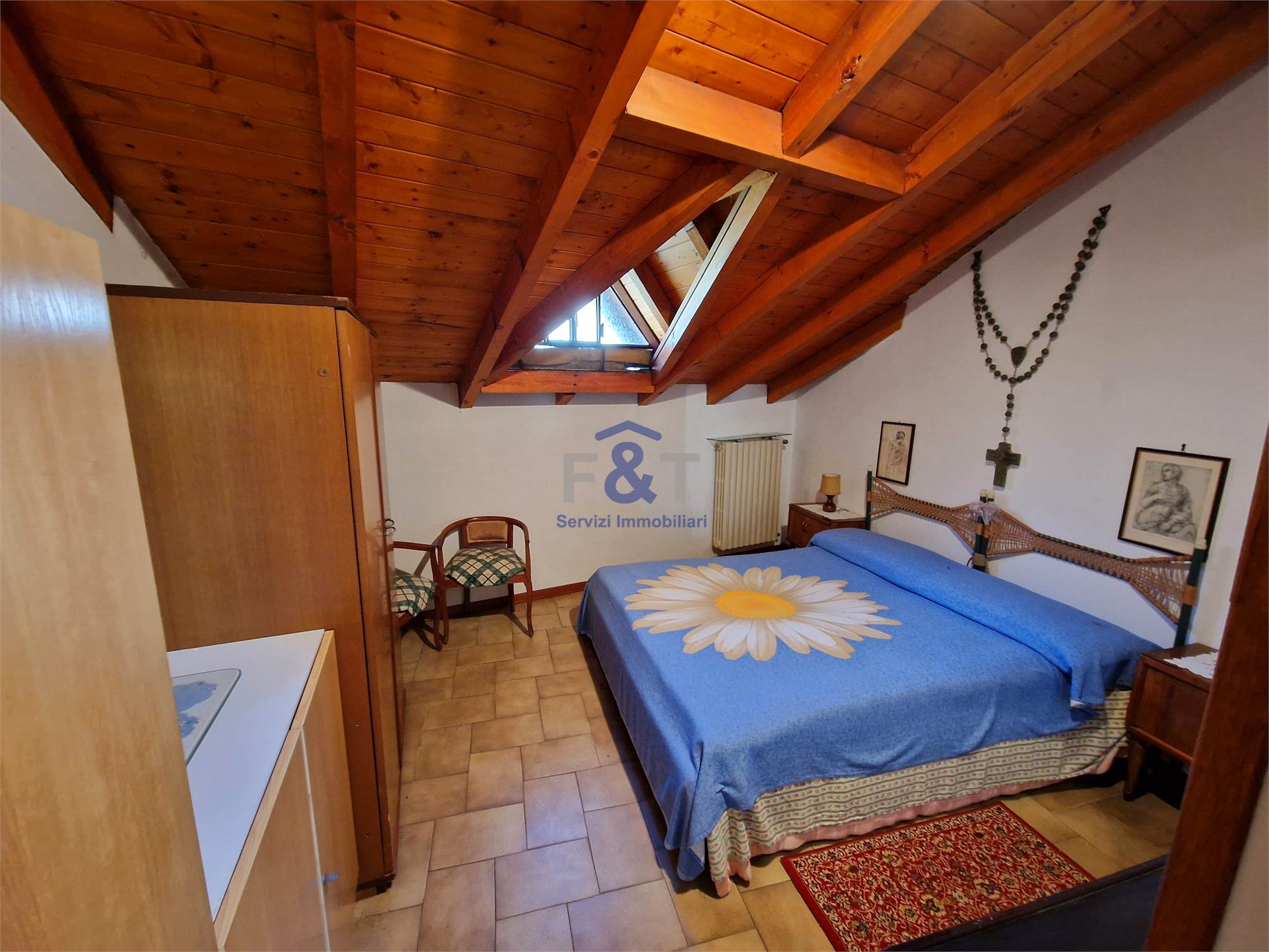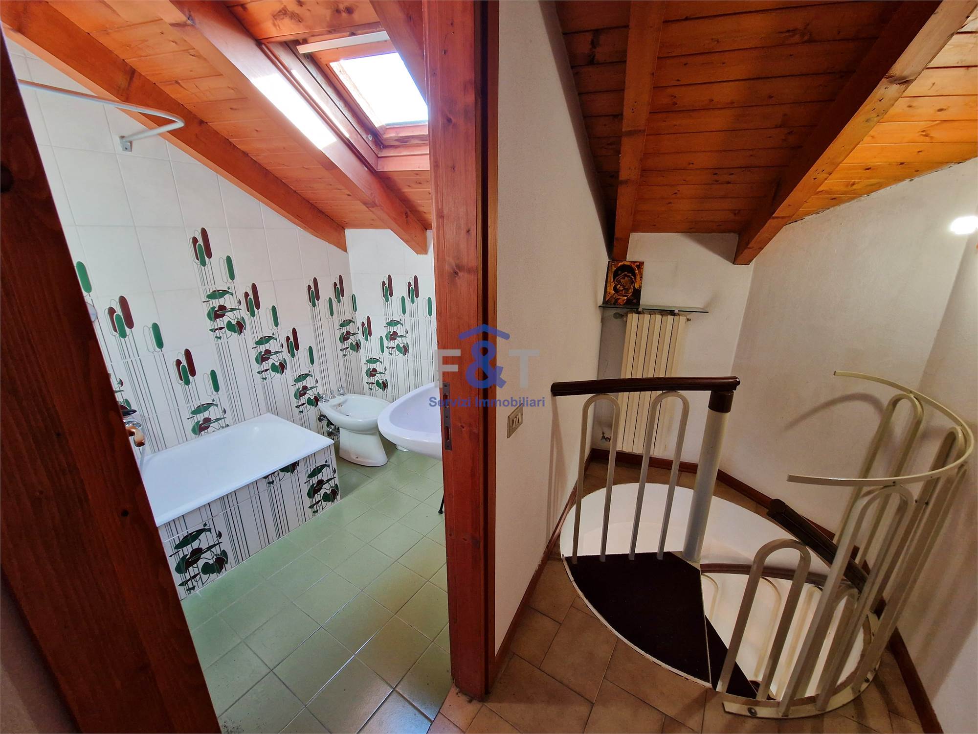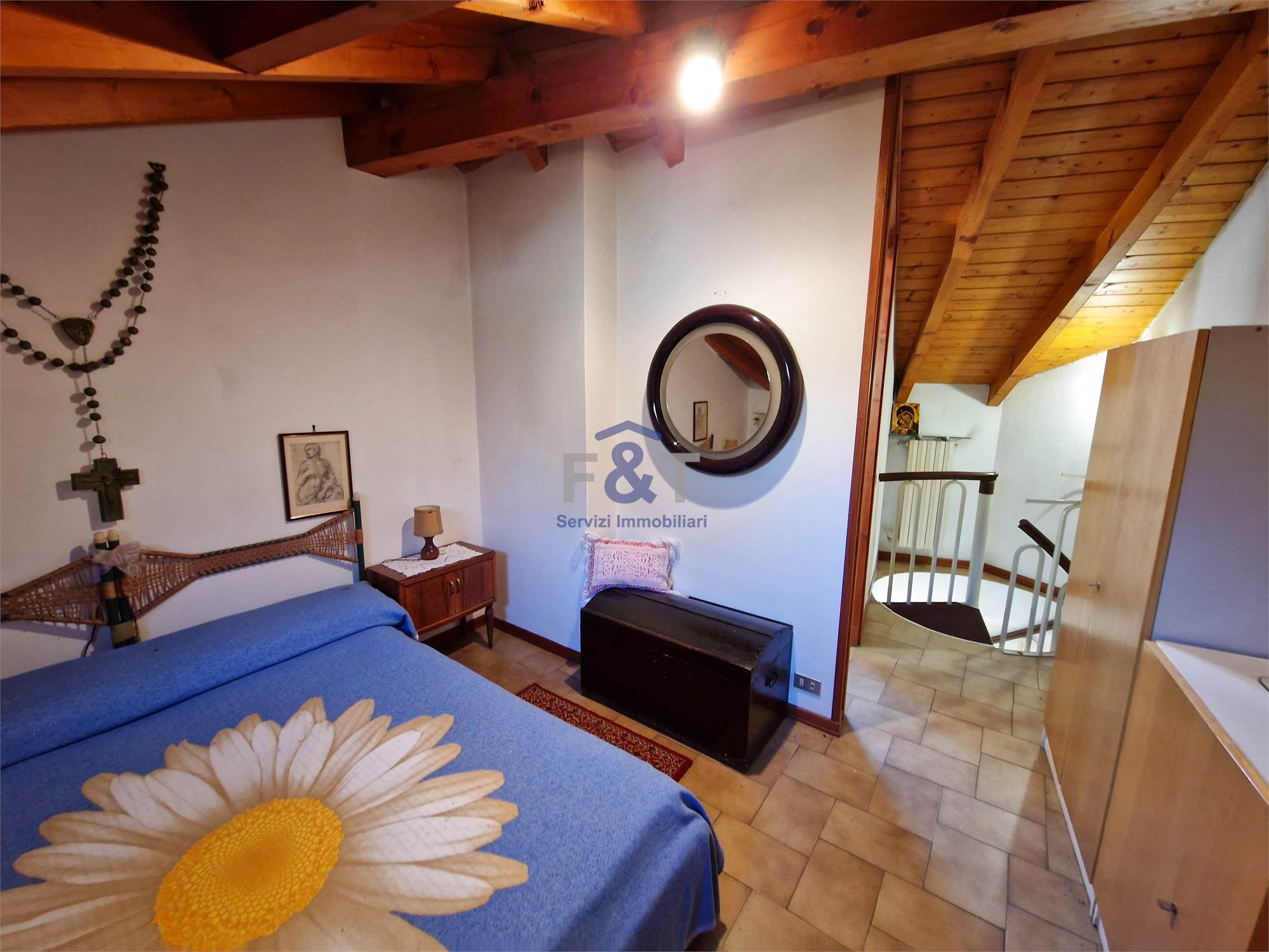 Salendo una caratteristica scala a chiocciola, si giunge al secondo piano, dove una suggestiva camera da letto con travi a vista e finestre Velux regala una sensazione di calore e serenità, accompagnata da un secondo bagno completo con vasca.