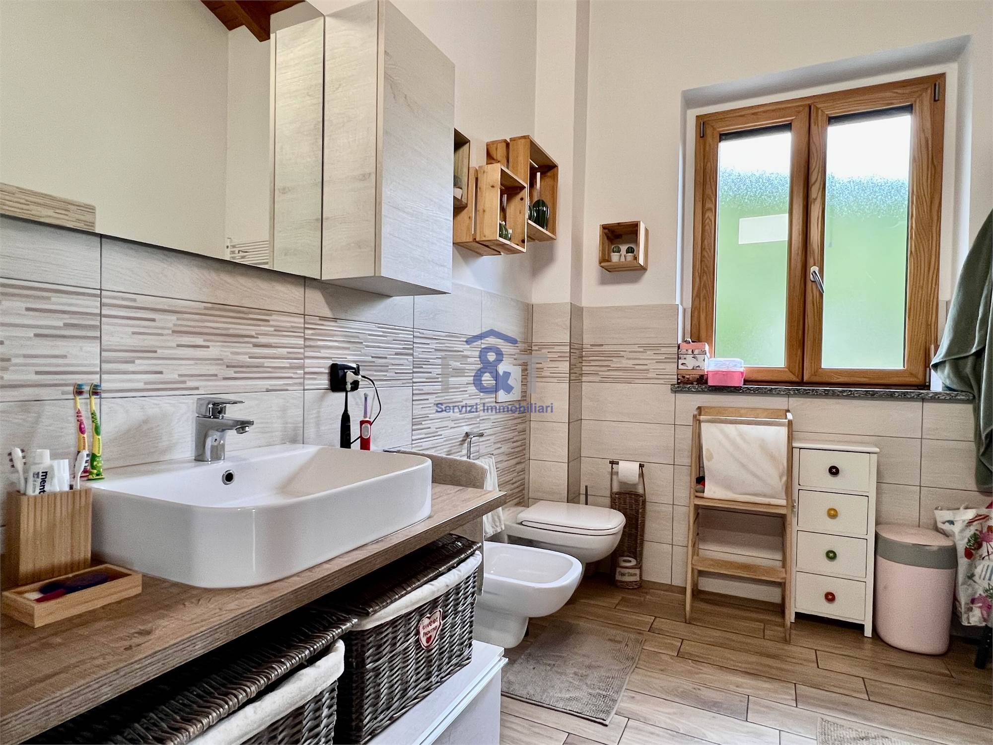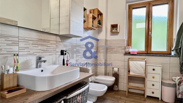 al piano seminterrato, tre camere da letto, un secondo bagno, locale tecnico/lavanderia e comodo ripostiglio.