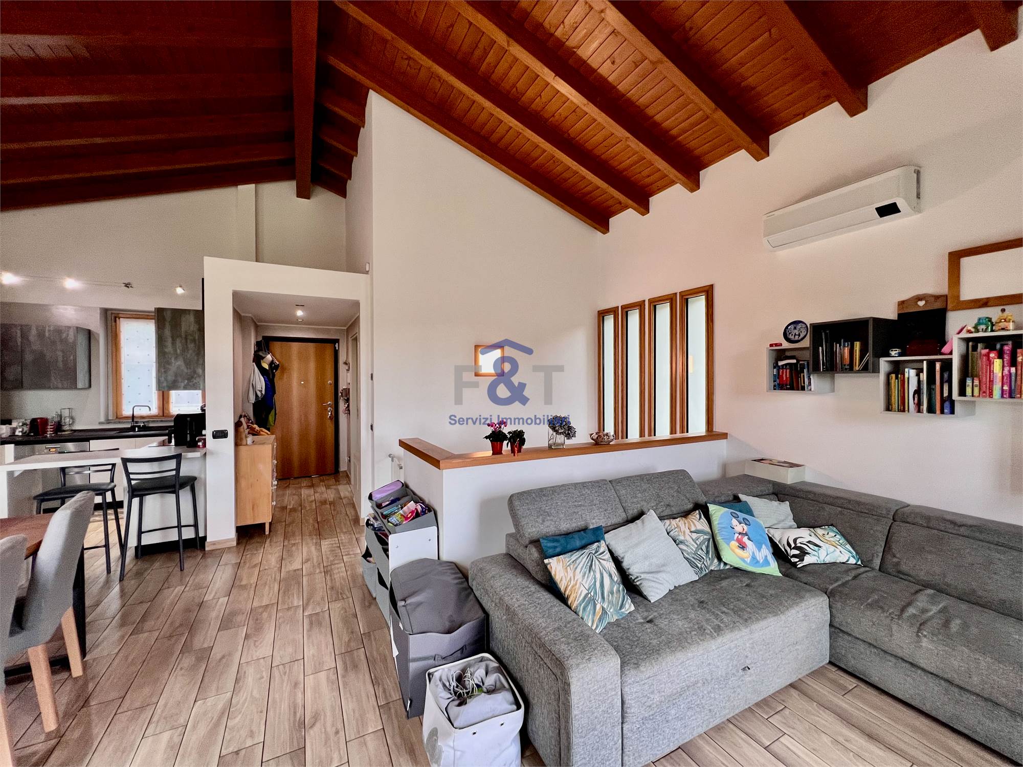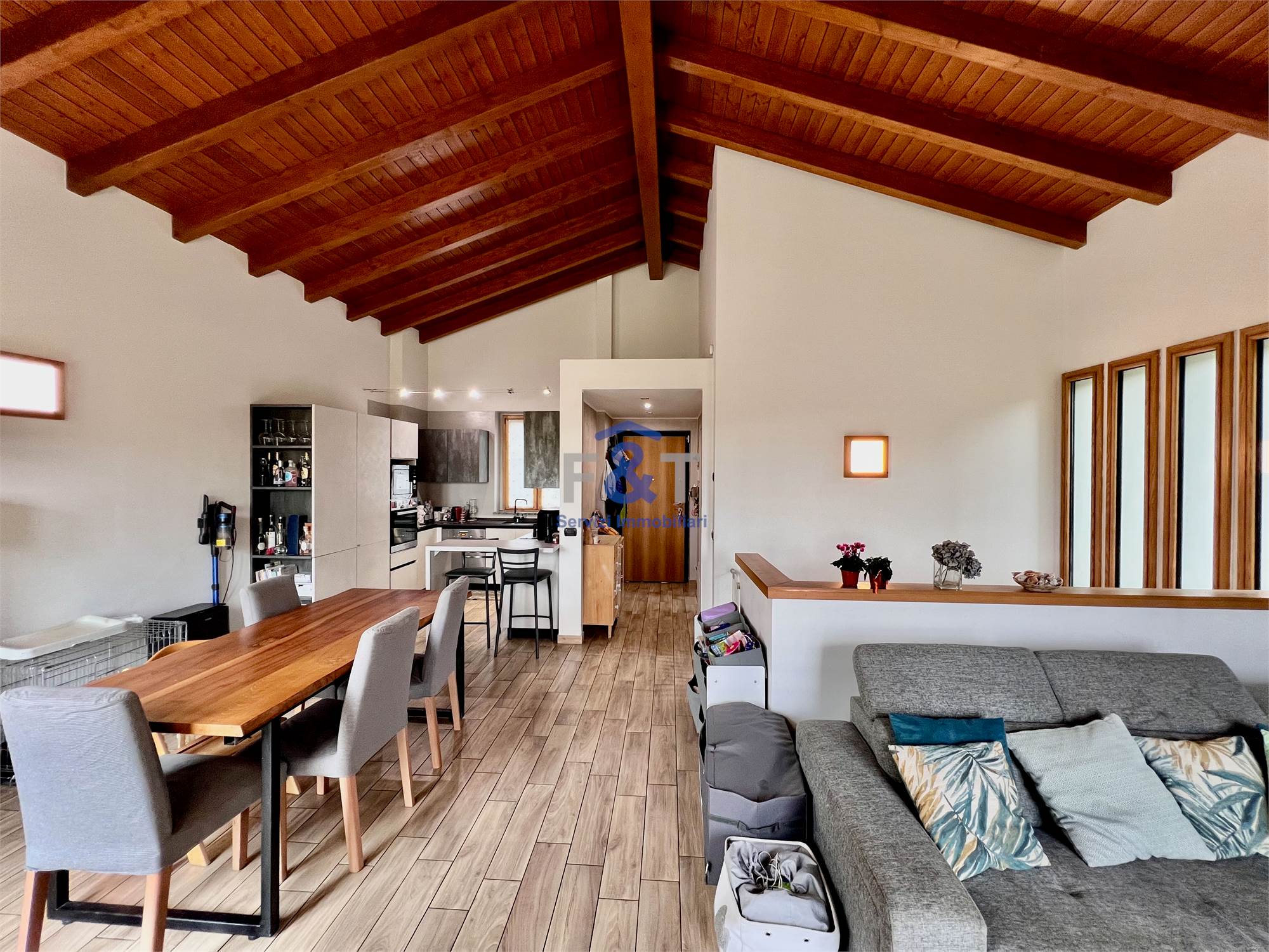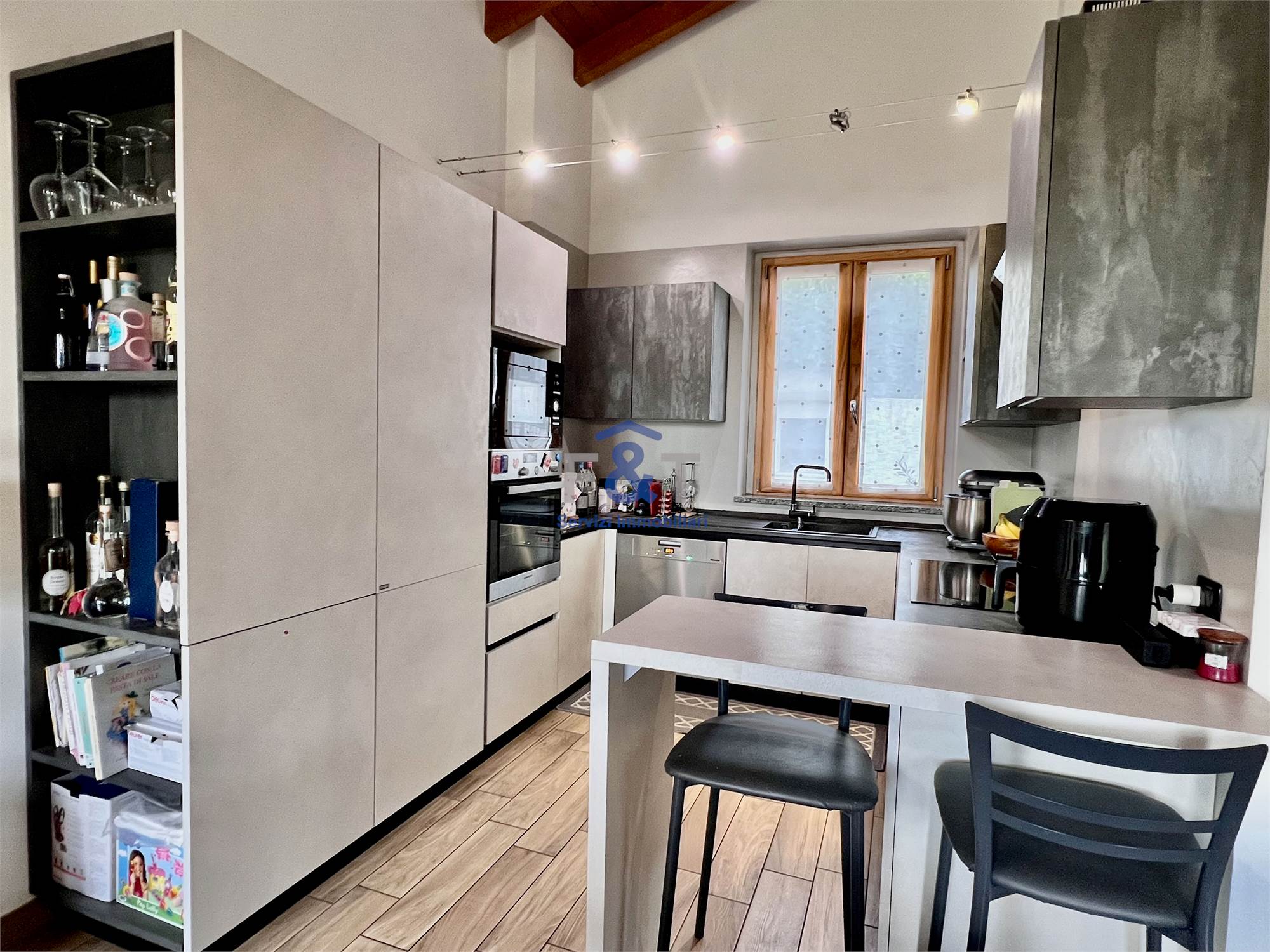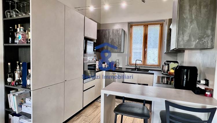 al piano terreno troviamo un luminoso soggiorno con cucina a vista, ingresso e bagno;