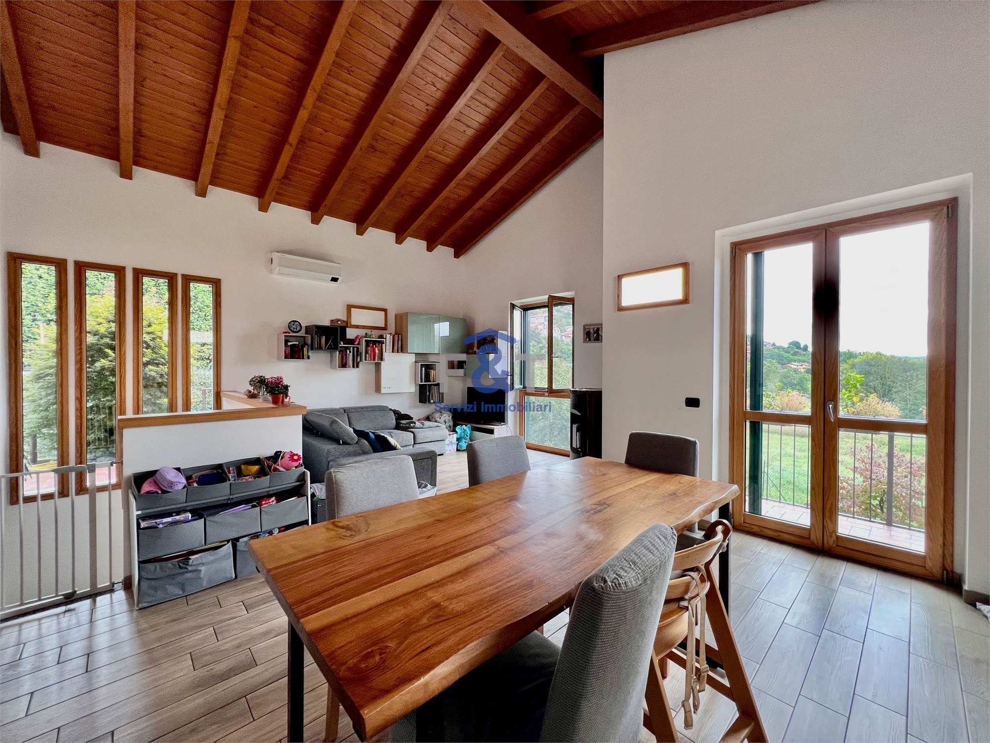 Completano la proprietà un’autorimessa doppia, un balcone panoramico e un ampio giardino privato di circa 300 mq, perfetto per momenti di relax all’aperto o per chi cerca uno spazio verde da vivere tutto l’anno.