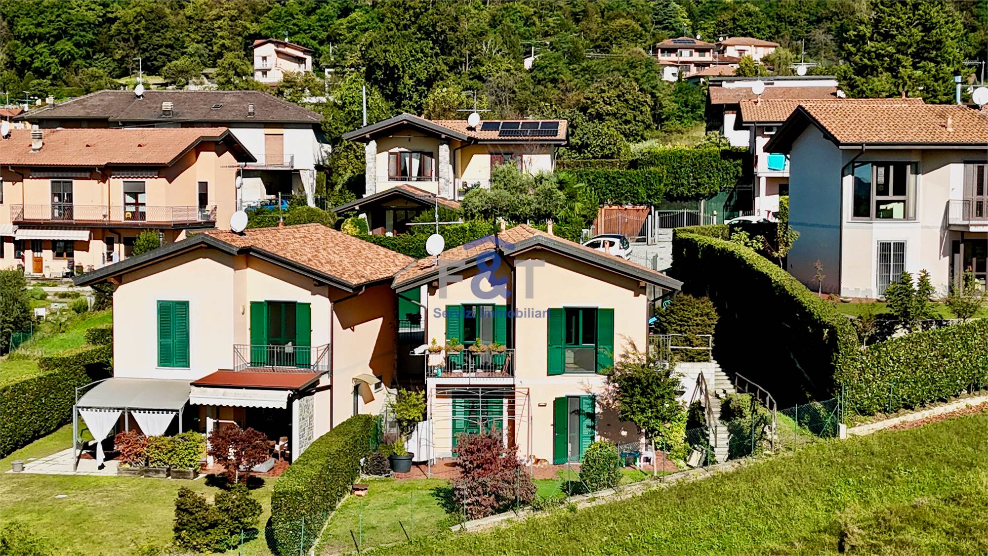 Villa bifamiliare recente con vista panoramica e giardino privato