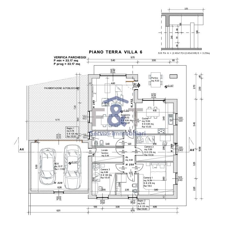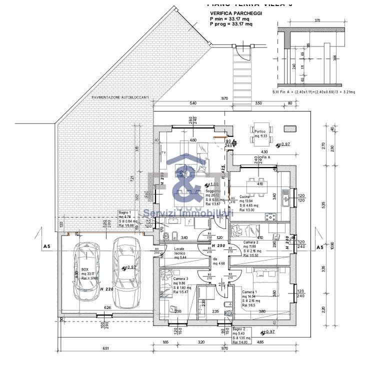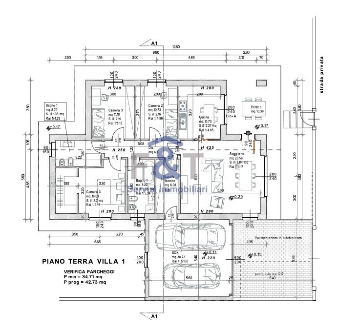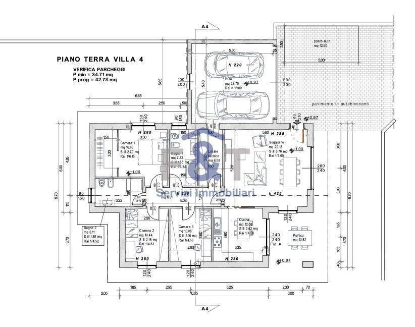 Gli spazi interni sono razionali e luminosi: l’ingresso conduce all’ampio soggiorno, con possibilità di cucina a vista oppure separata, mentre la zona notte ospita tre camere da letto e due bagni. Completano la proprietà un comodo ripostiglio adibito a lavanderia o locale tecnico, una doppia autorimessa affiancata, un posto auto esterno e un giardino privato di generose dimensioni, tra i 400 e i 500 mq, ideale per vivere appieno gli spazi all’aperto.