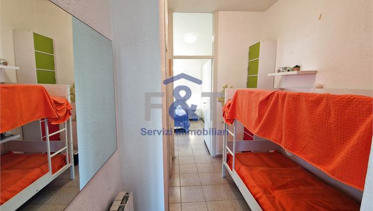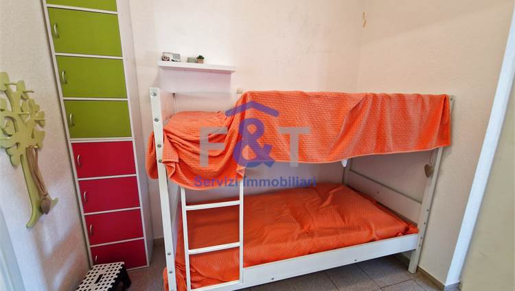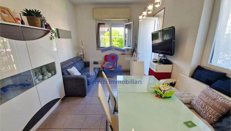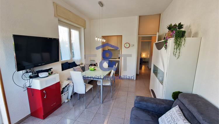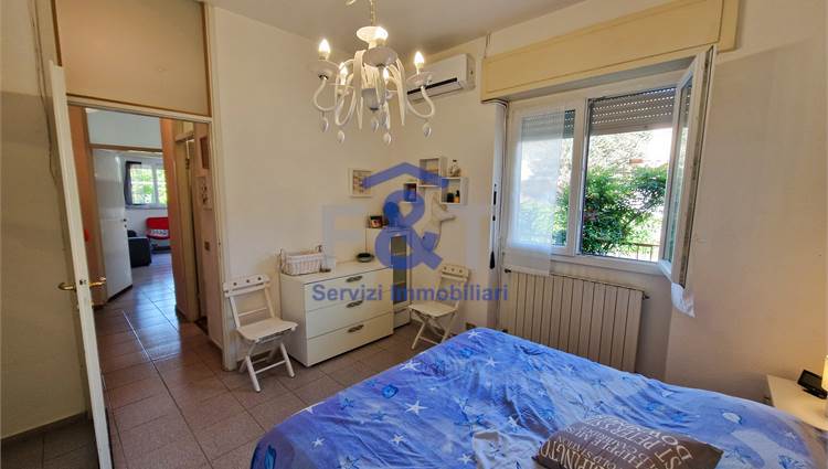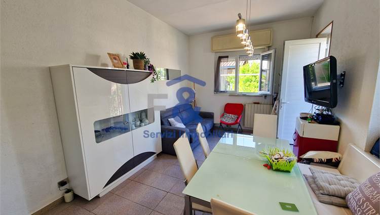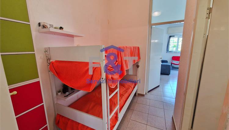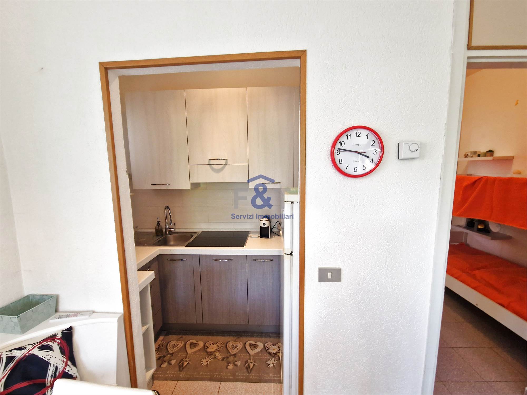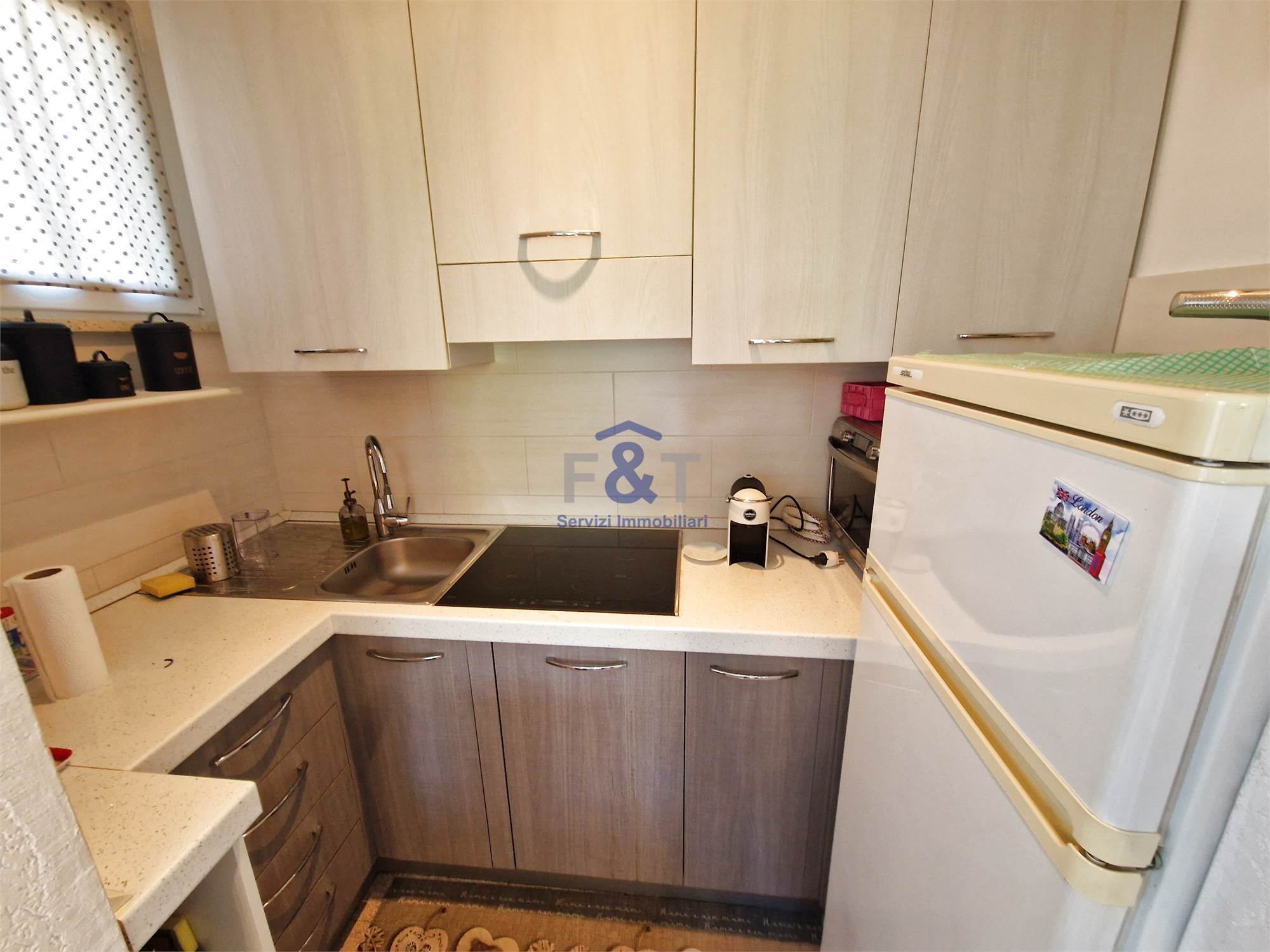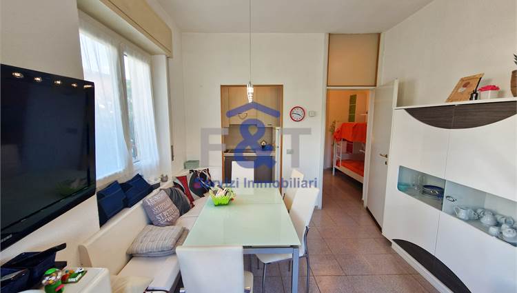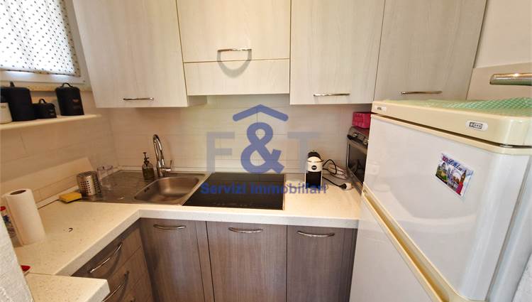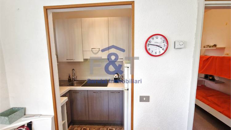 L’ingresso ci introduce in un luminoso soggiorno con angolo cottura, dove la cucina, nuovissima e realizzata su misura, si integra perfettamente con lo spazio living, reso ancora più funzionale dalla presenza di un comodo divano letto, ideale per accogliere ospiti.