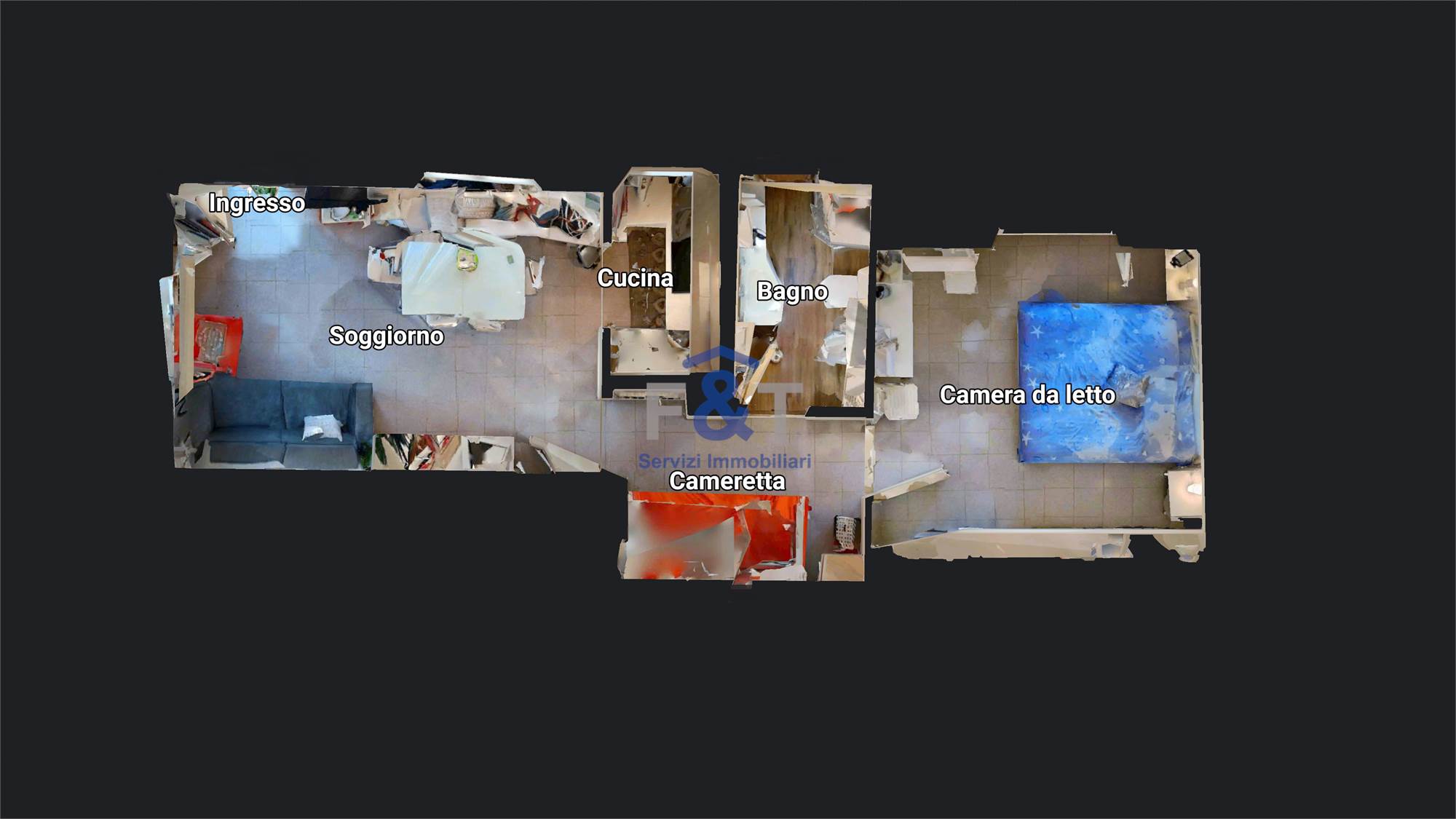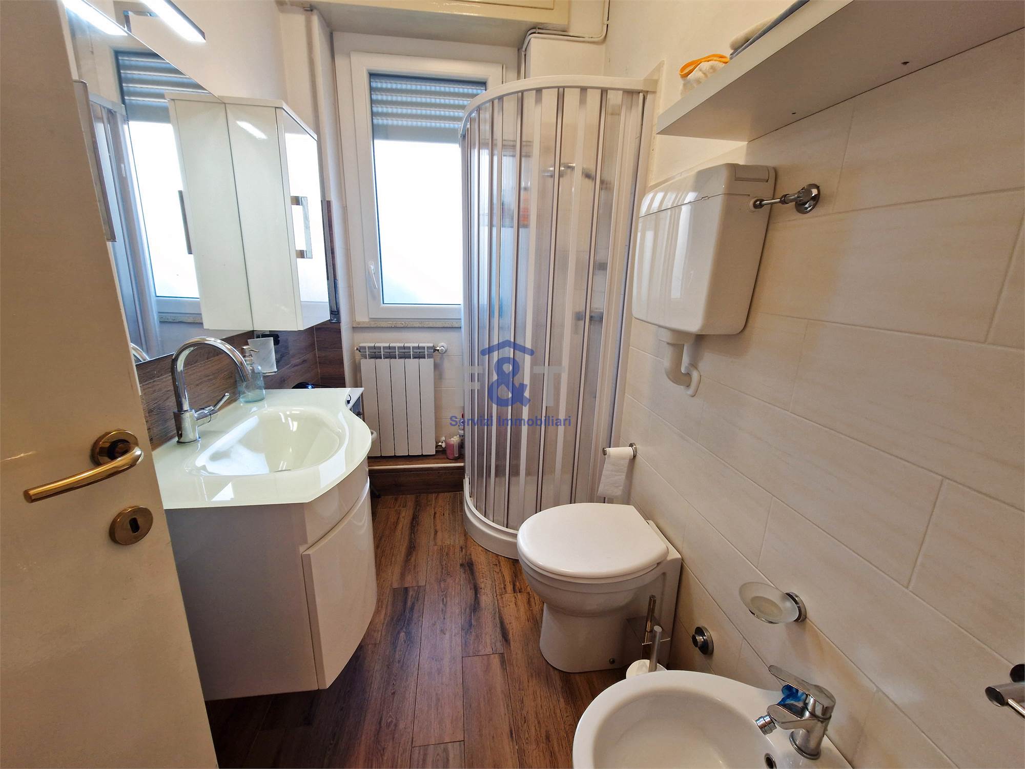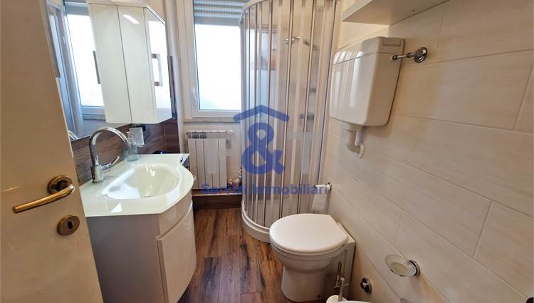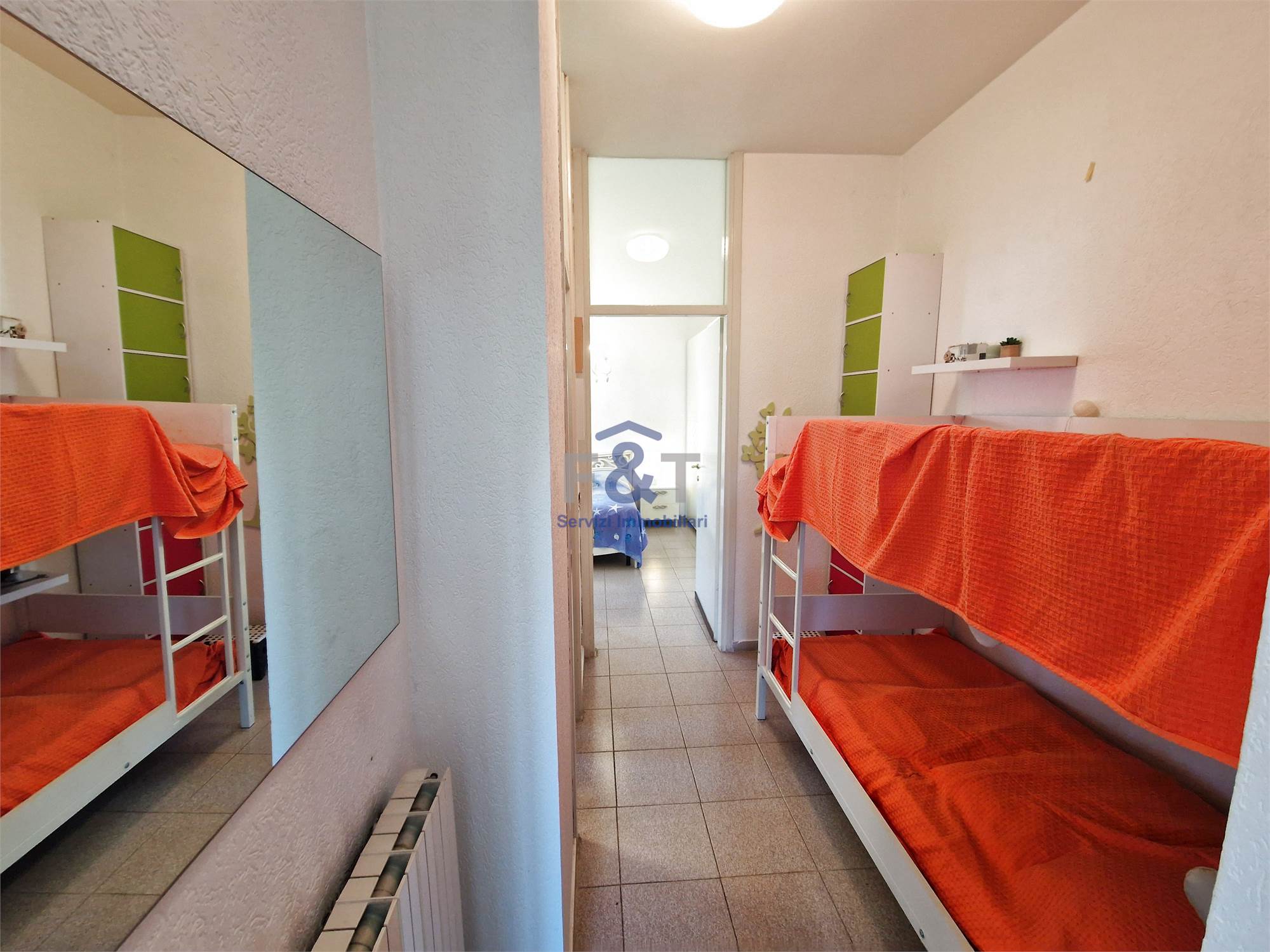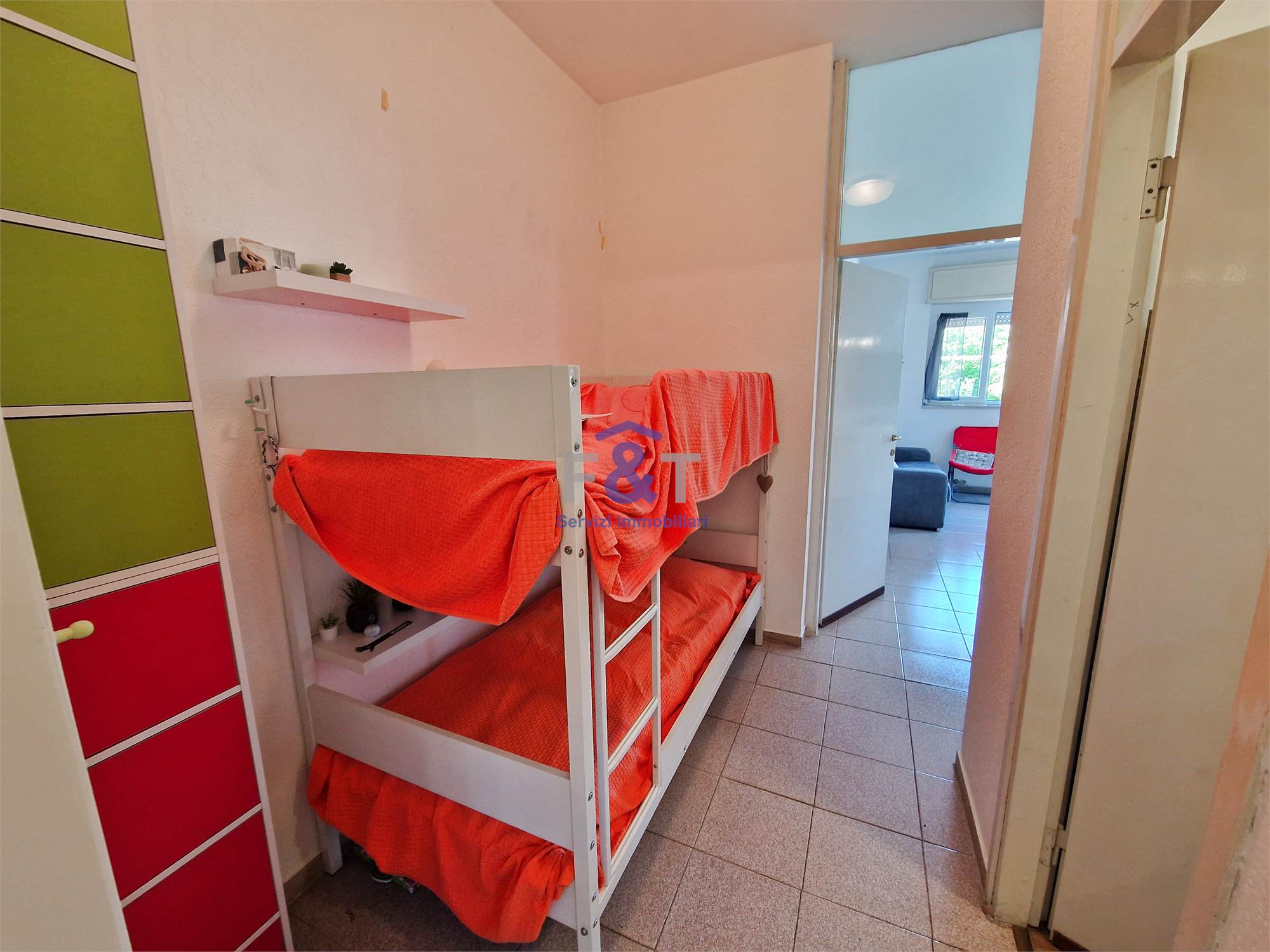 L’ingresso ci introduce in un luminoso soggiorno con angolo cottura, dove la cucina, nuovissima e realizzata su misura, si integra perfettamente con lo spazio living, reso ancora più funzionale dalla presenza di un comodo divano letto, ideale per accogliere ospiti.