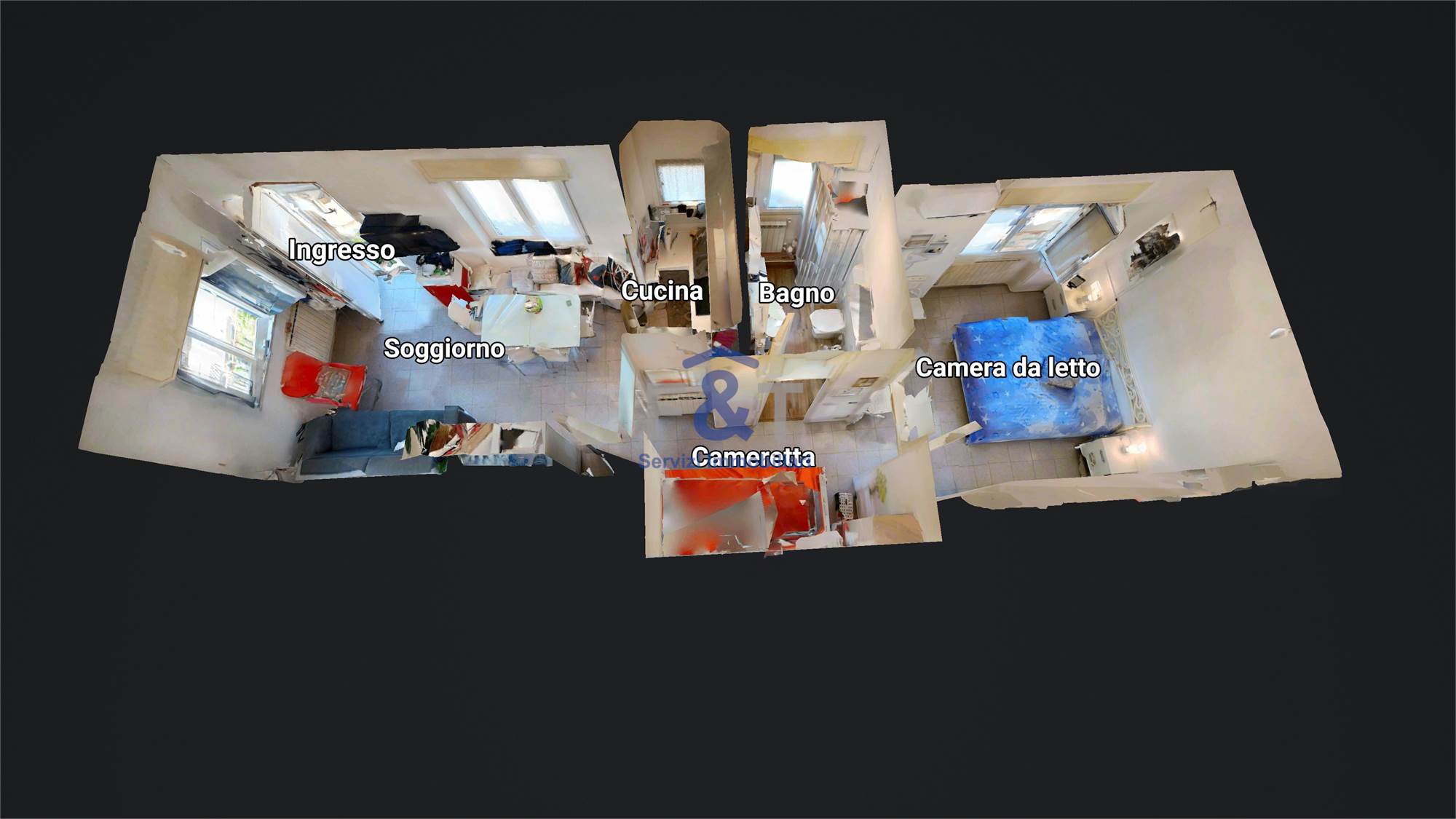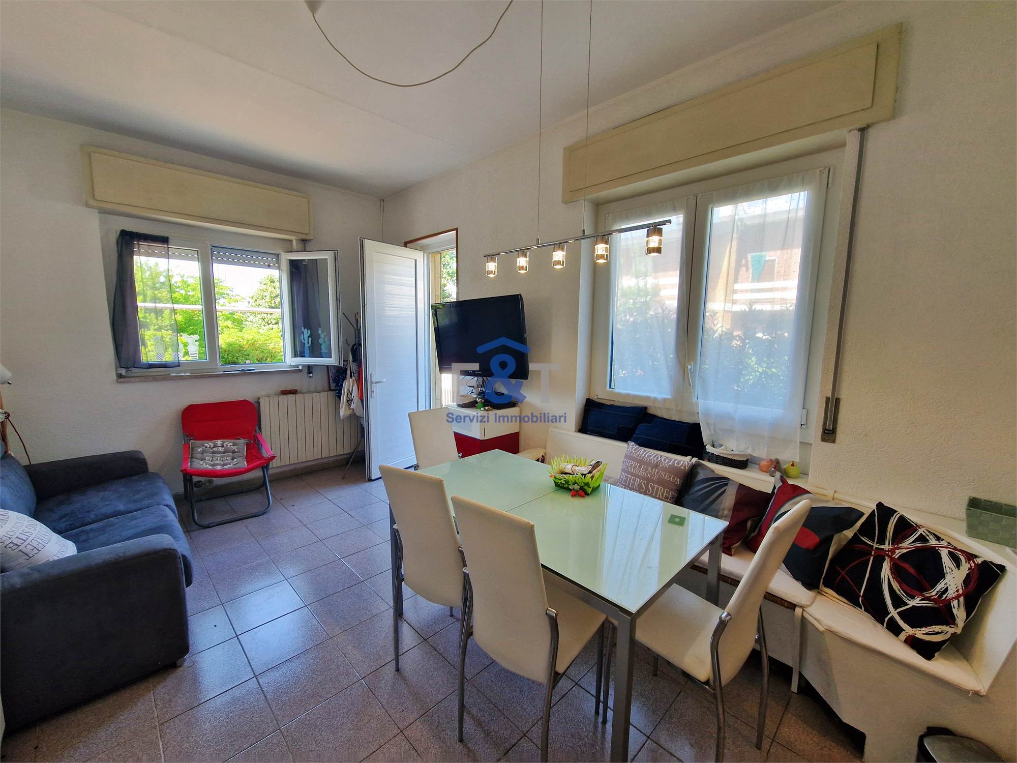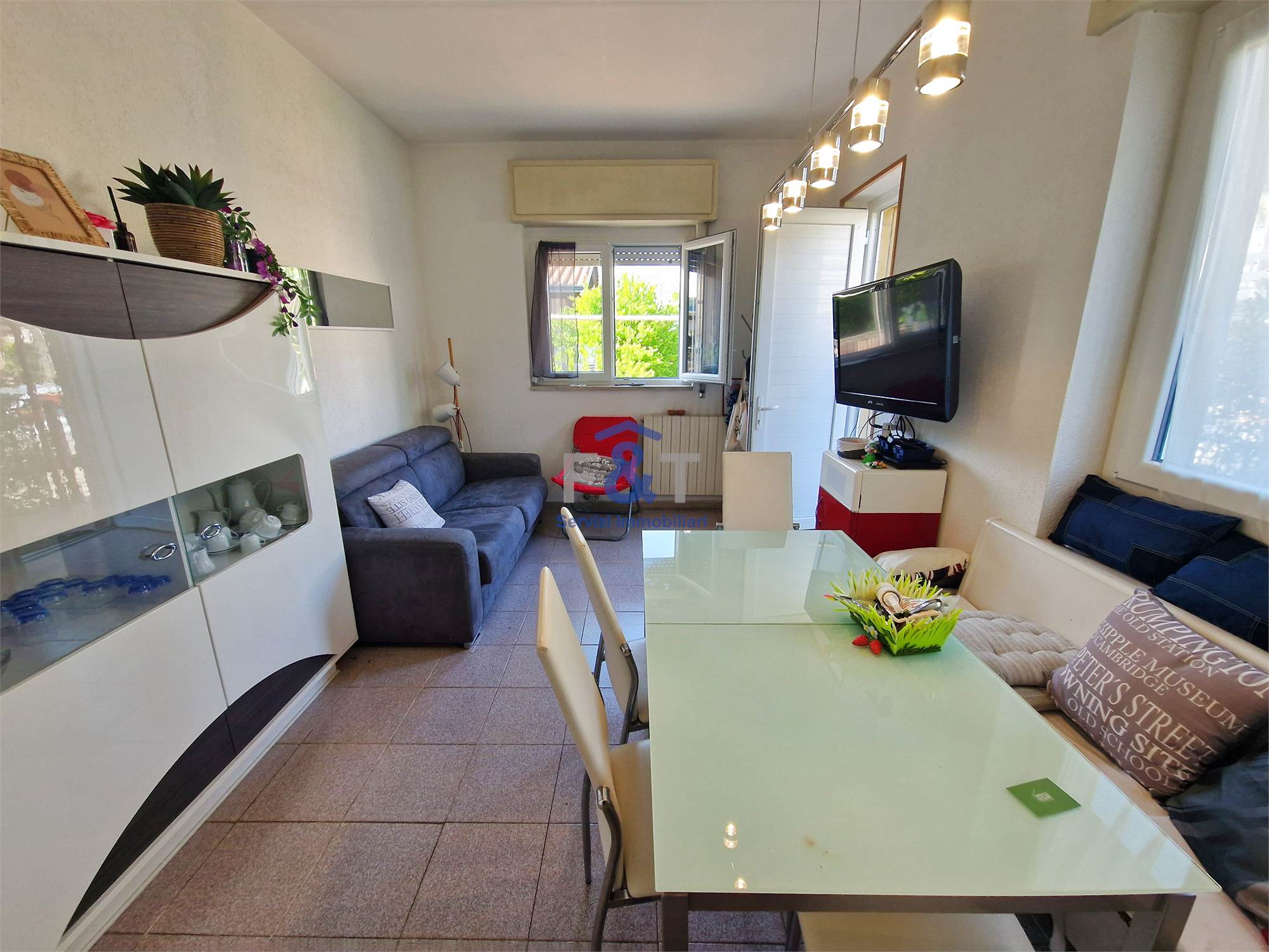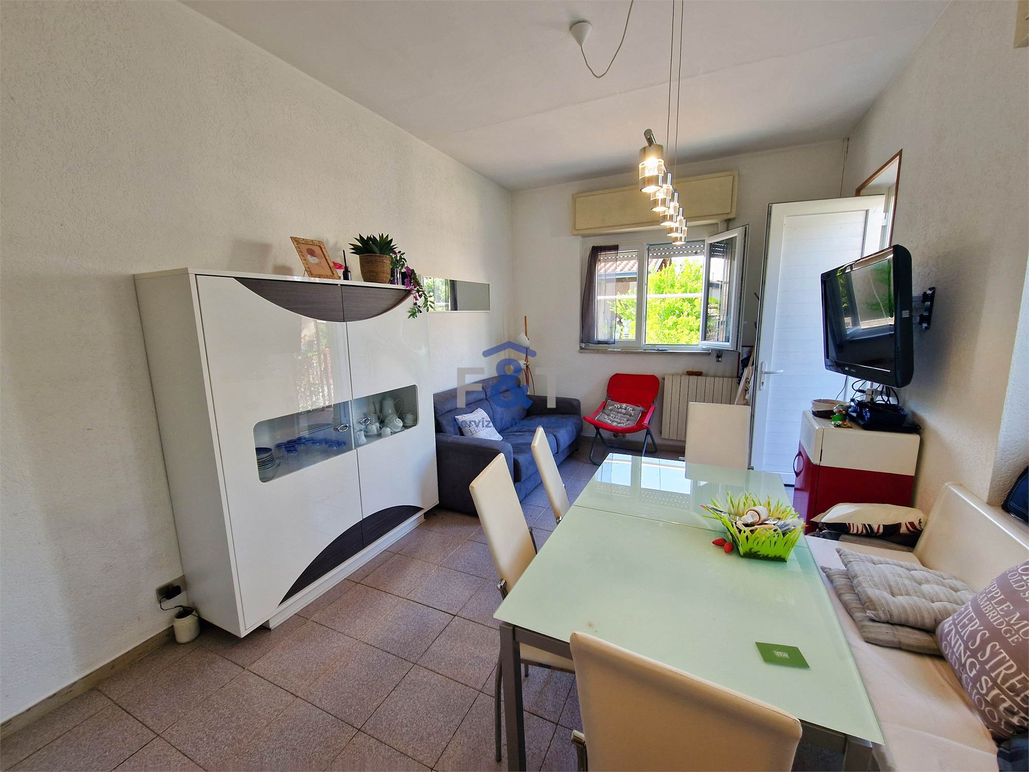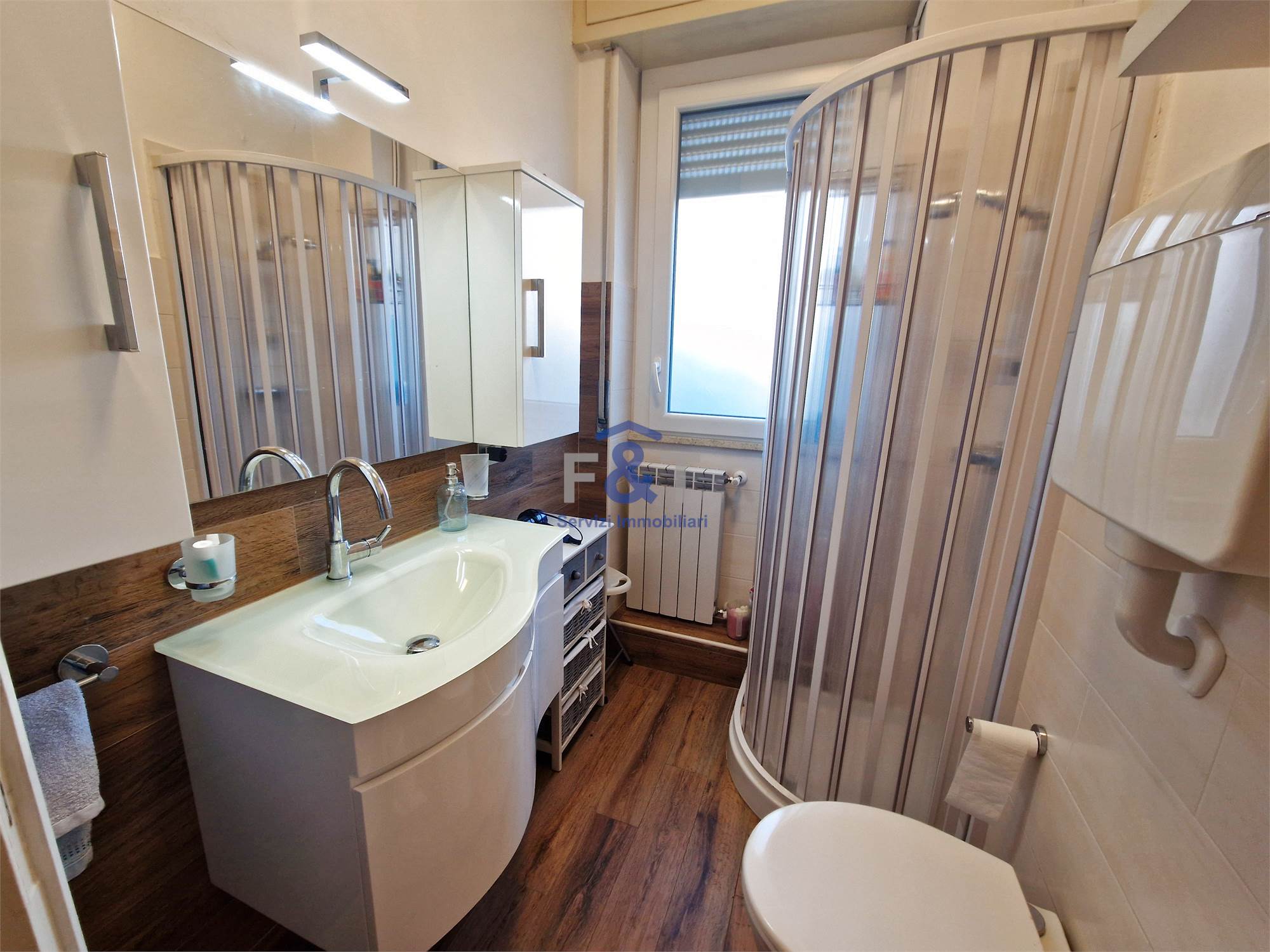 L’ingresso ci introduce in un luminoso soggiorno con angolo cottura, dove la cucina, nuovissima e realizzata su misura, si integra perfettamente con lo spazio living, reso ancora più funzionale dalla presenza di un comodo divano letto, ideale per accogliere ospiti.