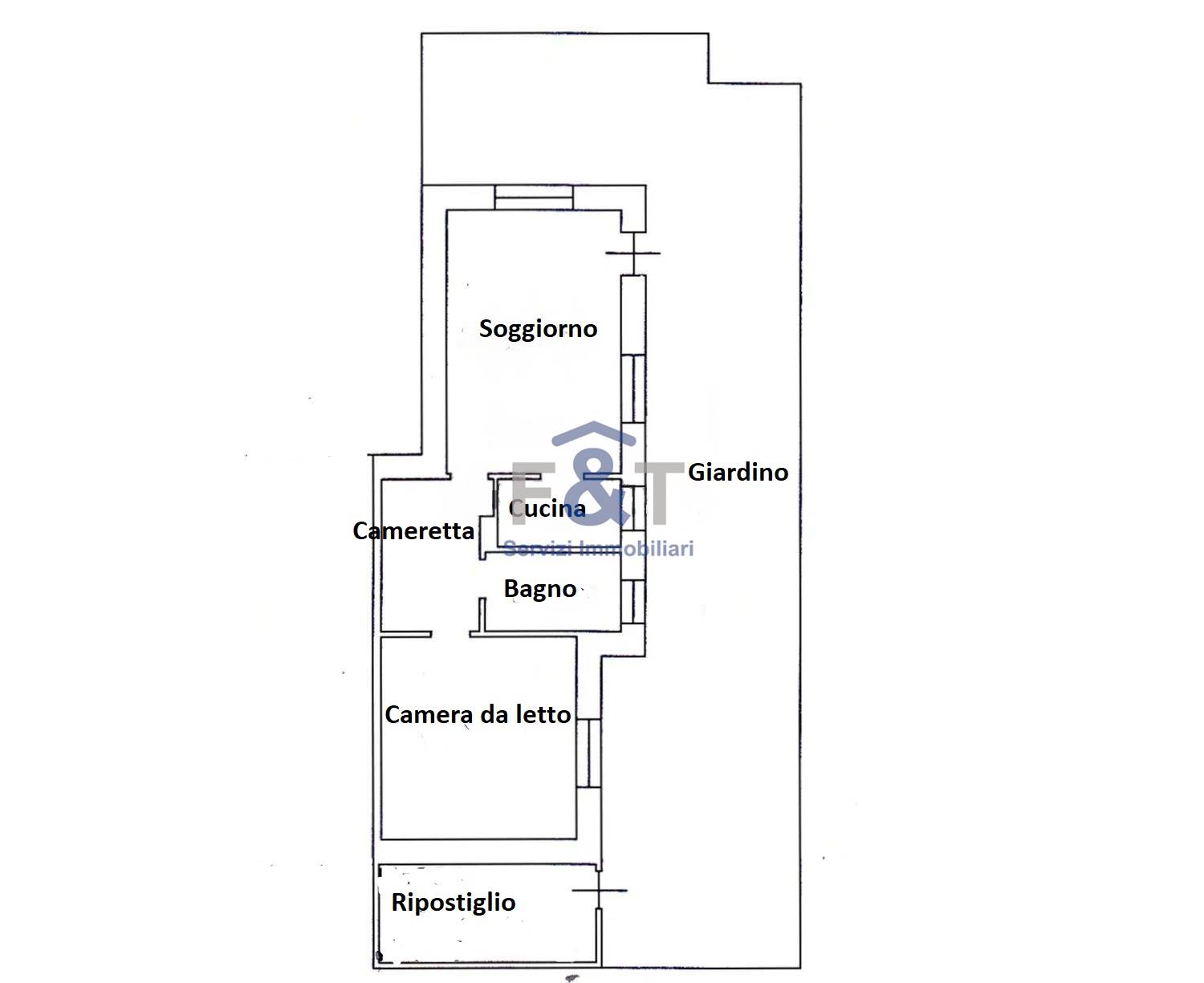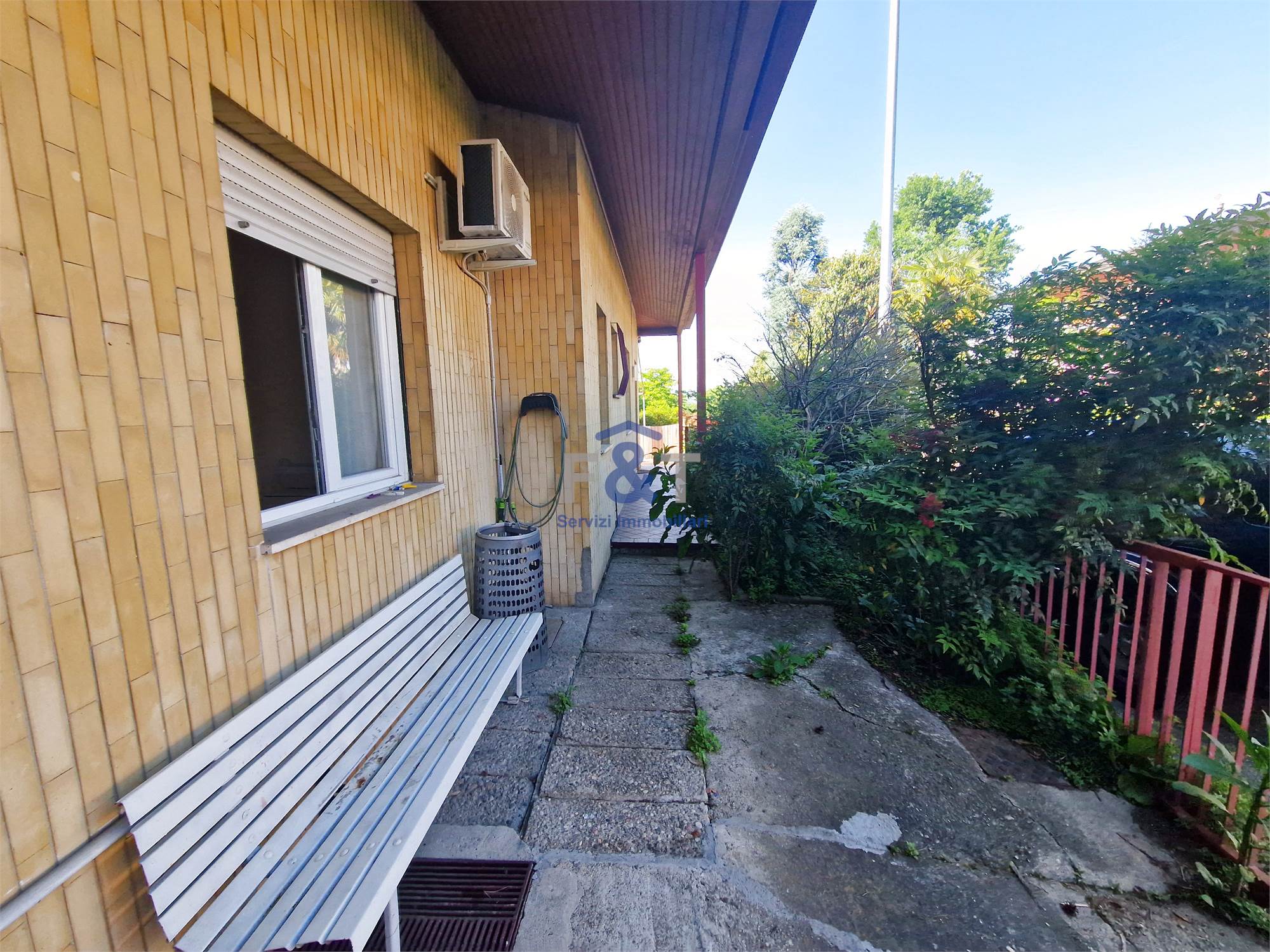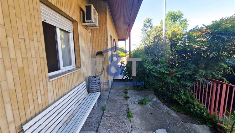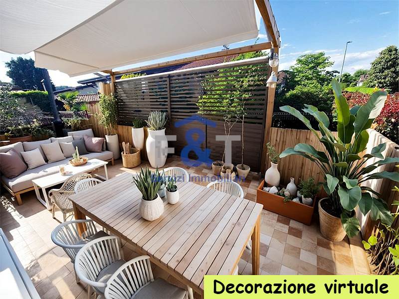 All’esterno, il giardino terrazzato è un vero angolo di pace, ideale per pranzi, cene o momenti di relax all’aria aperta, e ospita anche un grande ripostiglio adibito a lavanderia.