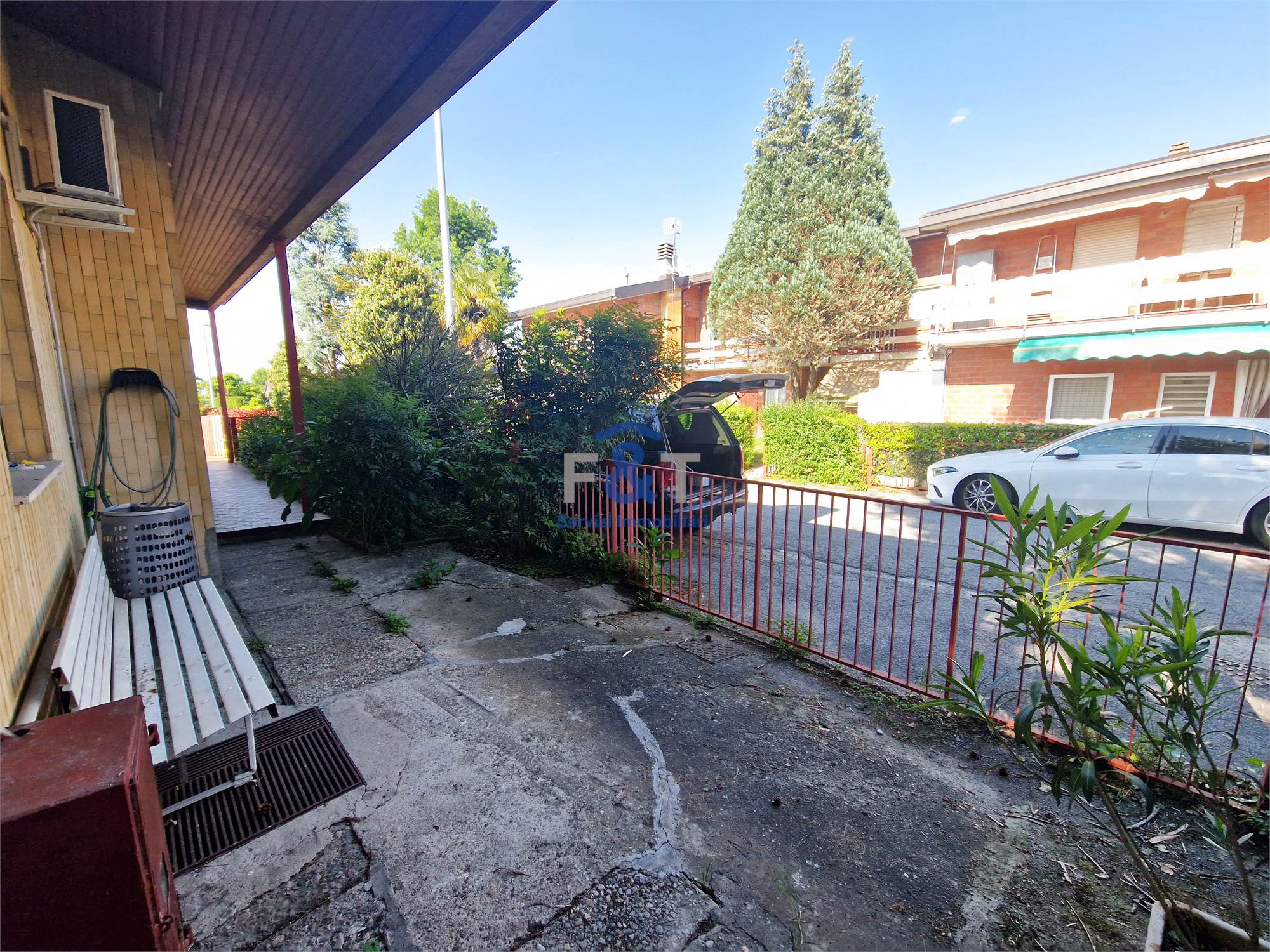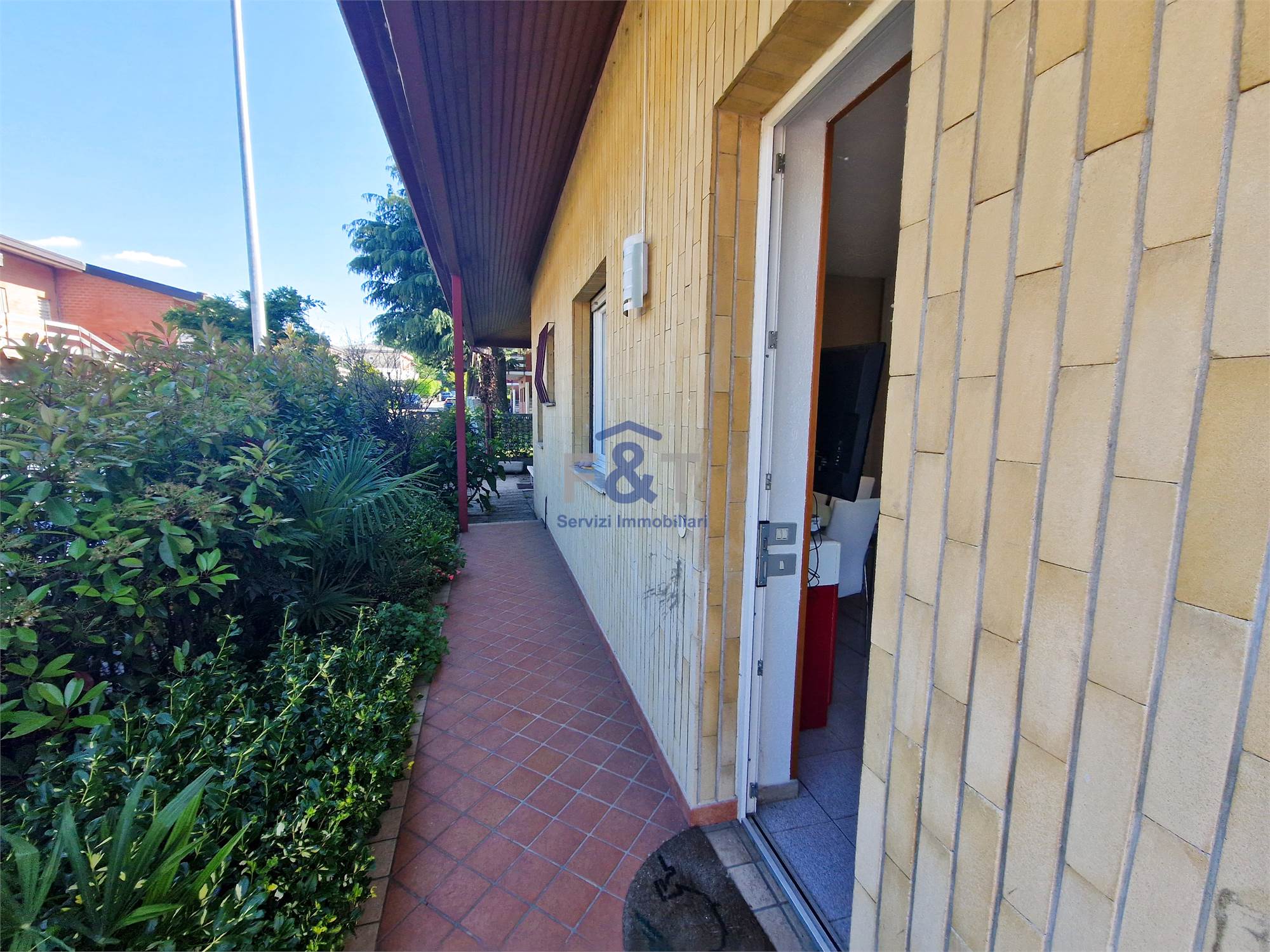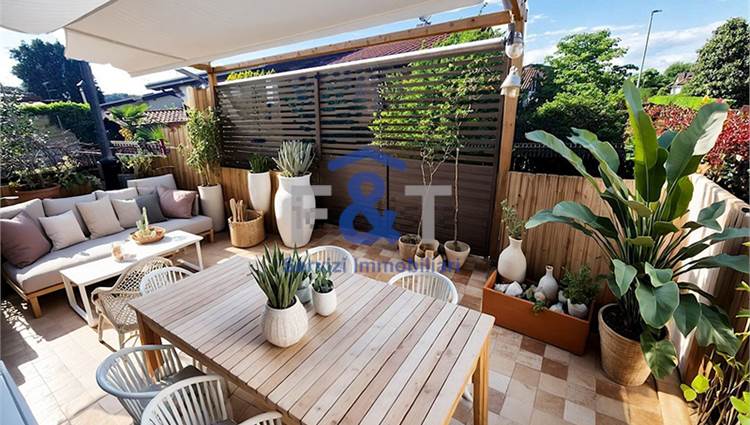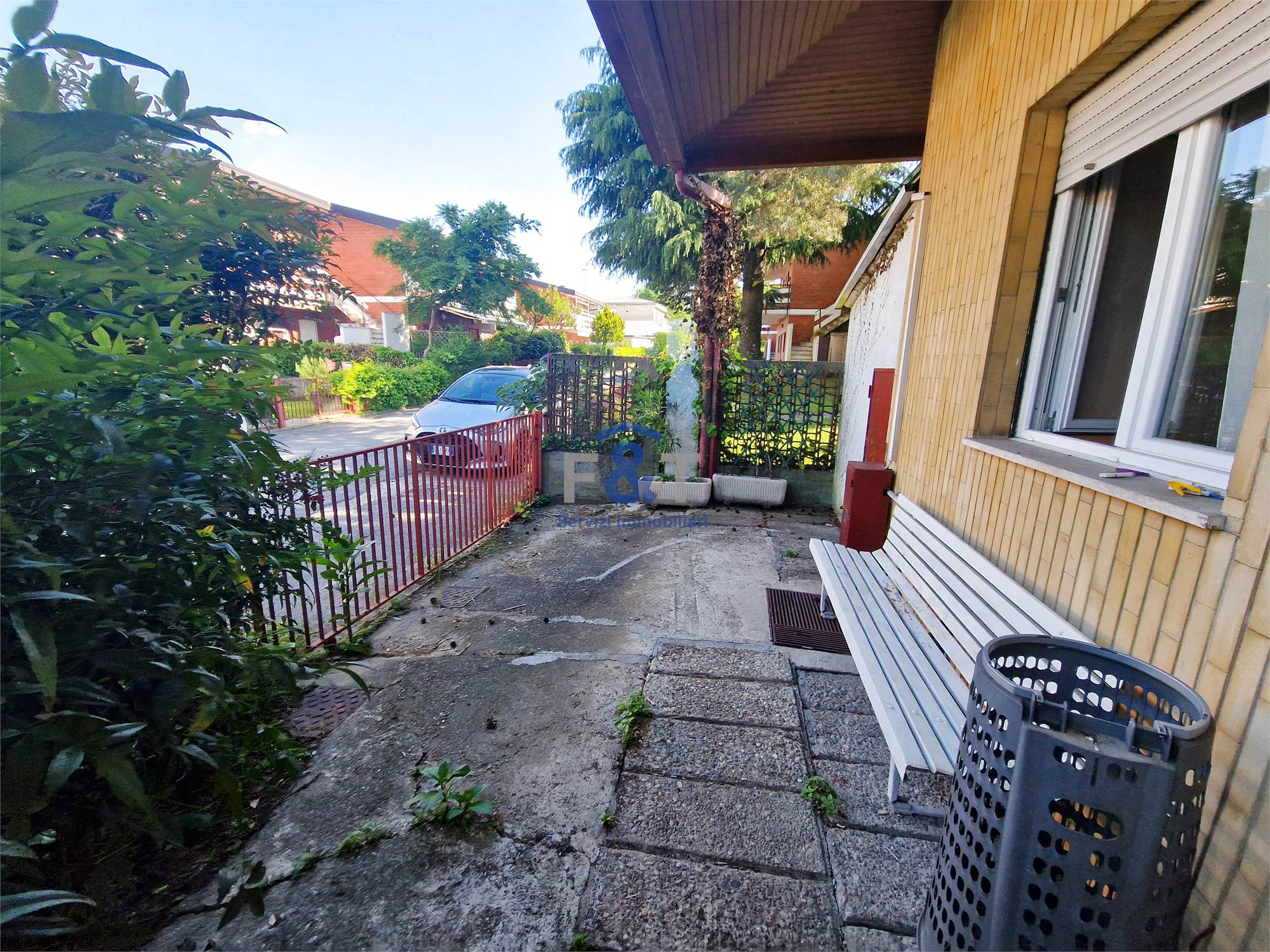 All’esterno, il giardino terrazzato è un vero angolo di pace, ideale per pranzi, cene o momenti di relax all’aria aperta, e ospita anche un grande ripostiglio adibito a lavanderia.